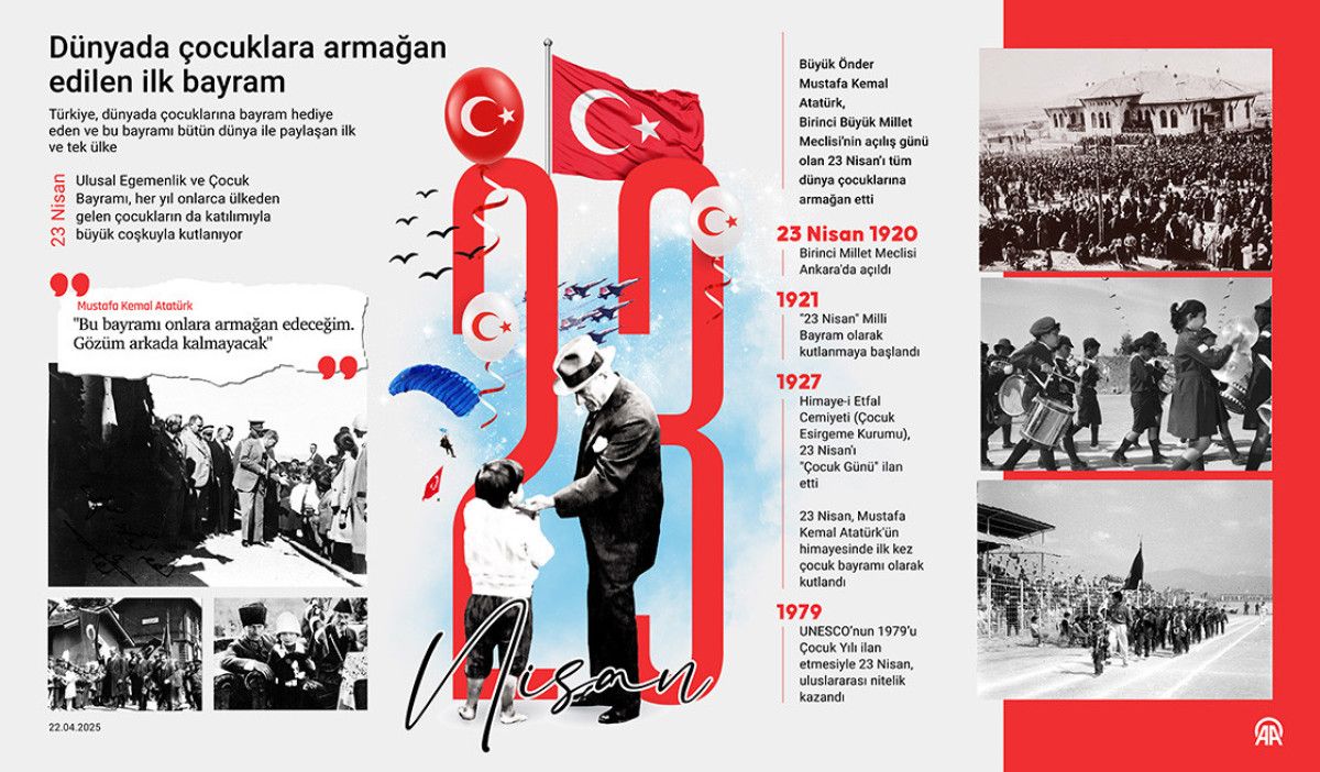 23 Nisan 1920’de Türkiye Büyük Millet Meclisi Ankara’da açıldı. Bu önemli gün, 1921 yılında “23 Nisan” adıyla Milli Bayram olarak kutlanmaya başlandı.