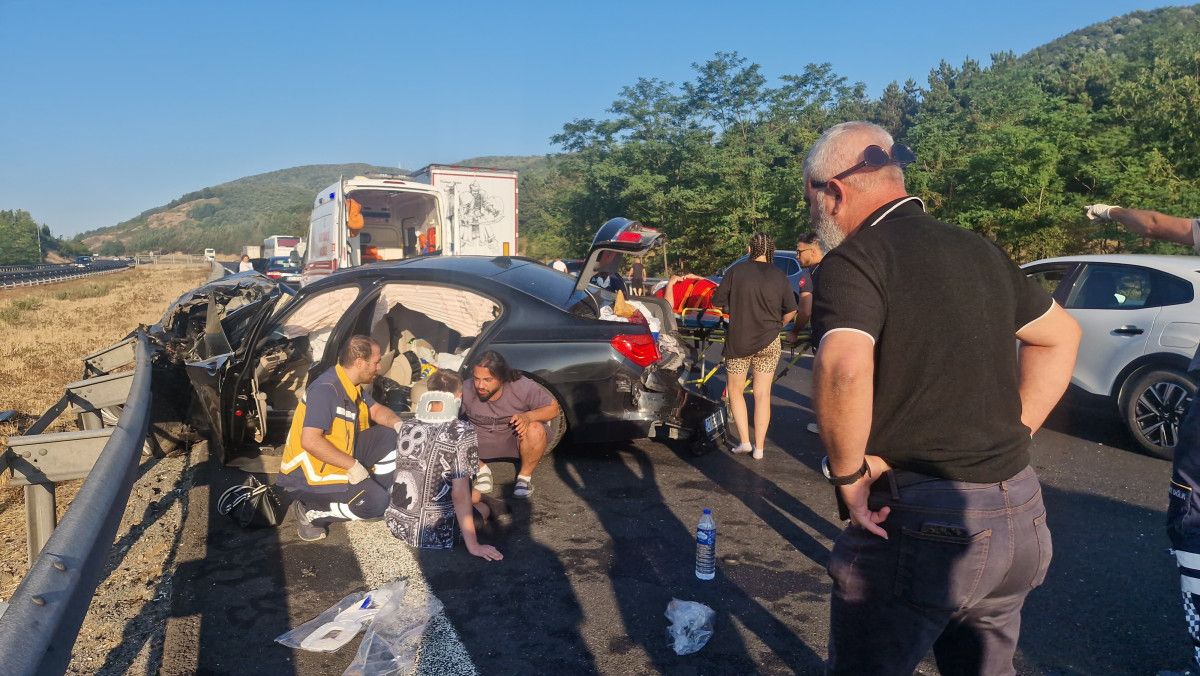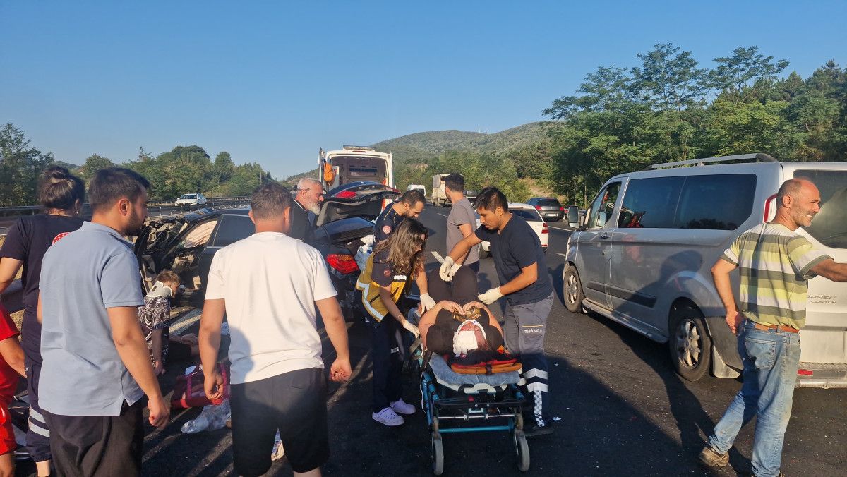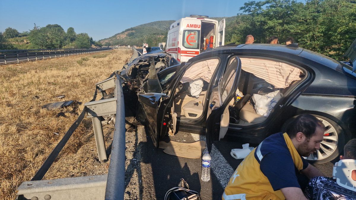 Bu sabah saatlerinde Anadolu Otoyolu’nun Düzce Gümüşova ilçesi geçişinde, Ankara’dan İstanbul istikametinde ilerleyen CT 53 MNT Romanya plakalı araba, tıpkı tarafta giden şoförünün ismi ve plakası öğrenilemeyen patates yüklü kamyona, akabinde da bariyerlere çarptı. Kazada, arabadaki Romanya asıllı Ecaterina C., Tulian C., David Gabriel C., Teodora C. ve Renas I. yaralandı. Etraftakilerin ihbarı üzerine kaza yerine sıhhat ve jandarma grupları sevk edildi. Yaralılar, etraftaki hastanelere kaldırıldı. Kazanın akabinde 3 şeritli yolda 2 şeritten sağlanan ulaşım, araçların yoldan kaldırılması sonrası tekrar olağana döndü.