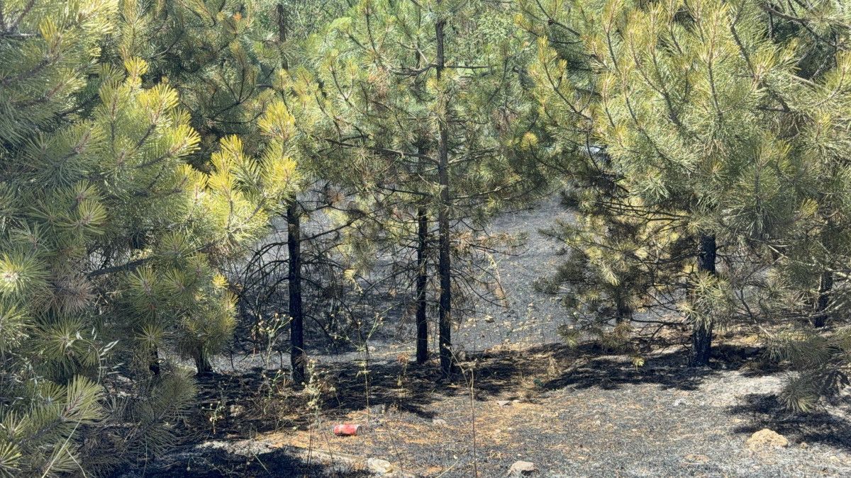 Yangın sonucunda yol kenarındaki otluk alan ile çamlık bölgede kısmi yanmalar meydana geldi.