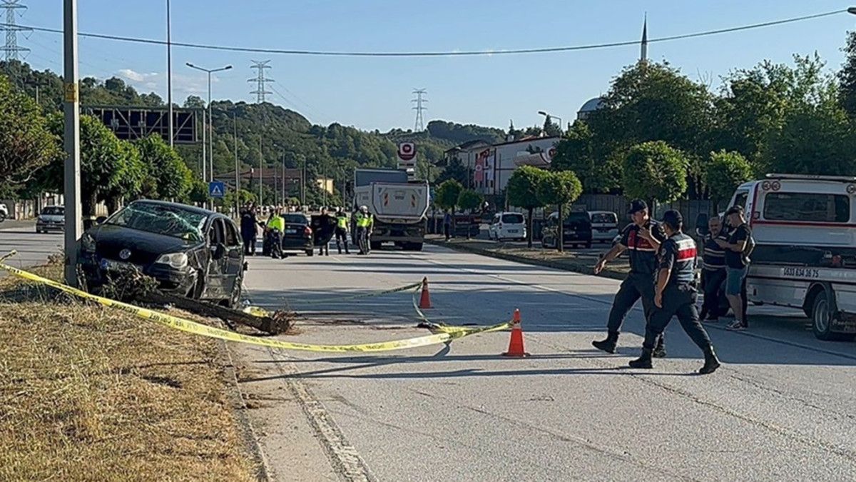 Düzce’de Zonguldak kara yolu Boğaziçi sapağı mevkiinde E.Y. yönetimindeki Vilayet Özel Yönetimi’ne ilişkin hafriyat kamyonu önünde seyreden H.Ç. idaresindeki arabaya çarptı.