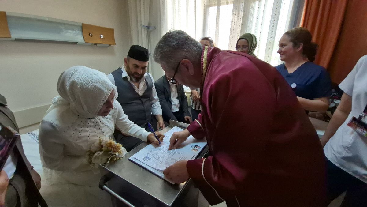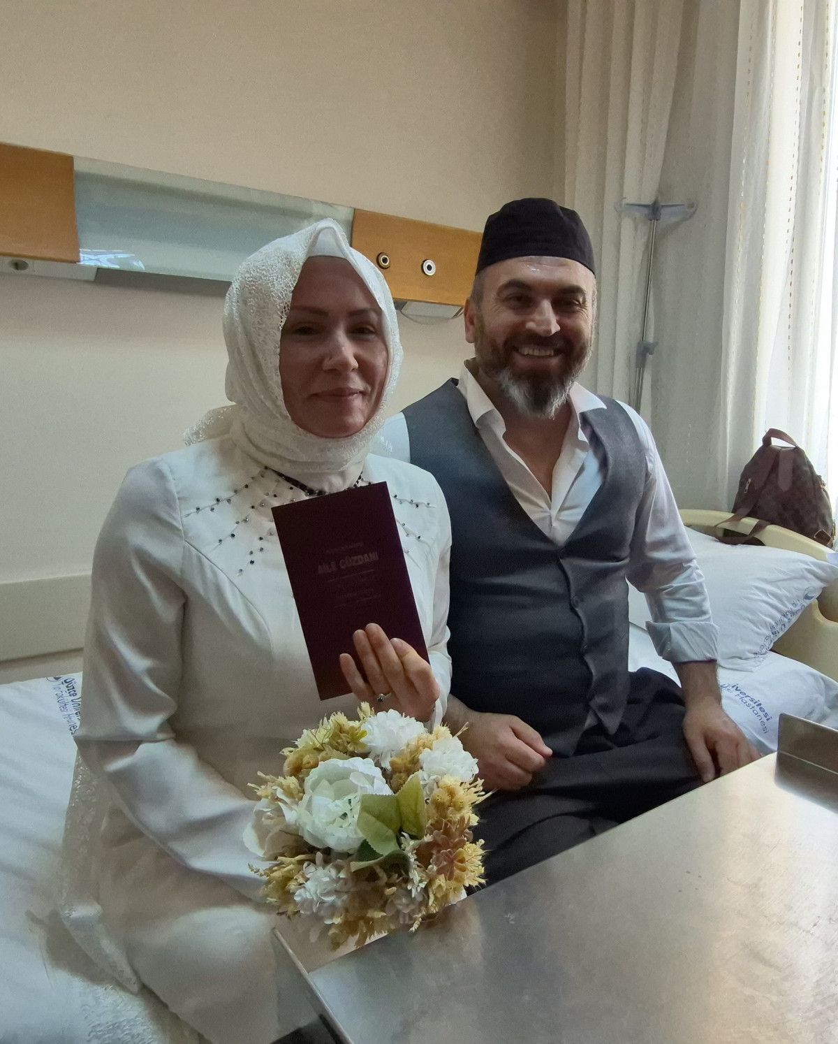 Bir dizi operasyon geçiren damat Osman Dilek nikah için kararlaştırılan tarihte hastanede olduğu için nikahları da hastane odasında kıyıldı.
