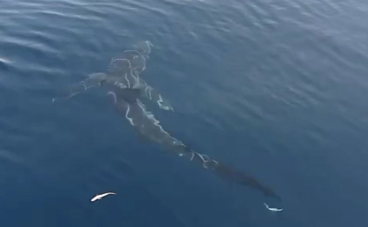 Bir müddet su yüzeyinde kalan köpek balığı daha sonra gözden kayboldu.