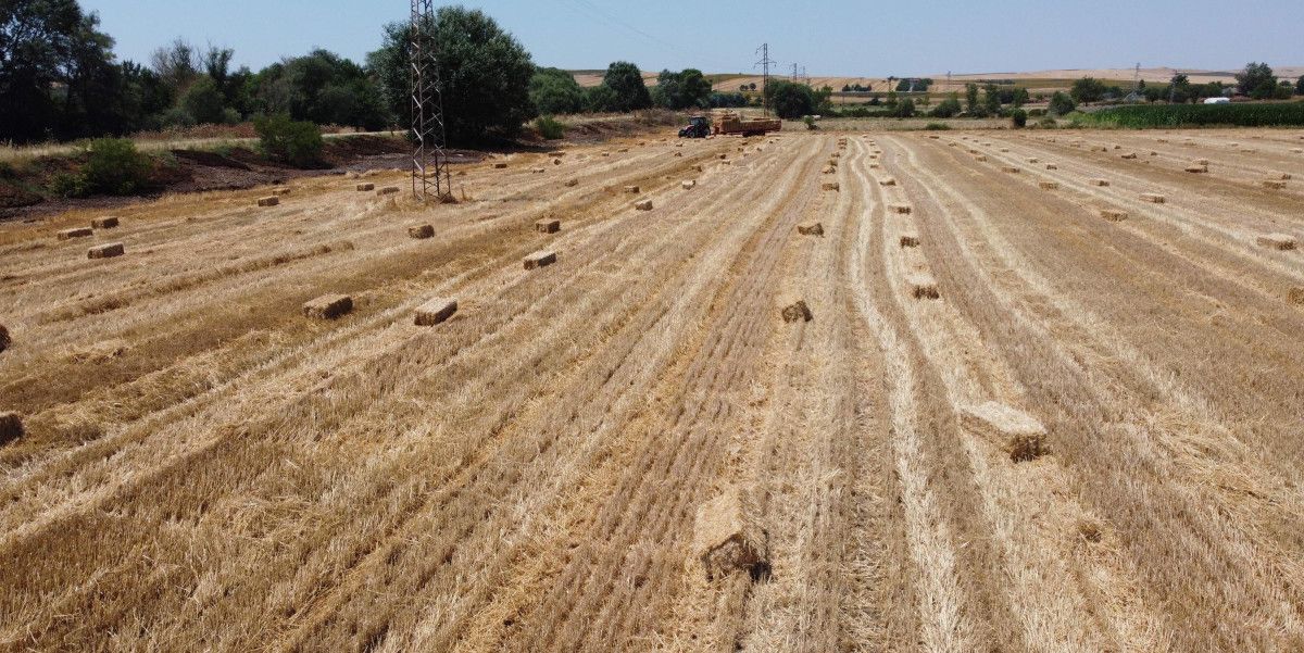 Buğdaydan geriye kalan saplar ise tarlalarda traktörlerde bağlı makinelerle, 25 kiloluk balya haline dönüştürülüyor.