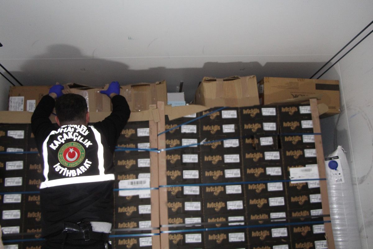X-ray taramasına sevk edilen araçta yapılan ayrıntılı aramada yasal yükün içerisine gizlenmiş vaziyette harici faturasız, evraksız, beyan edilmeyen bin 438 adet elektronik sigara, 10 bin 500 adet elektronik sigara atomizeri ve 28 bin 654 adet ilaç cinsi eşya ele geçirildi.