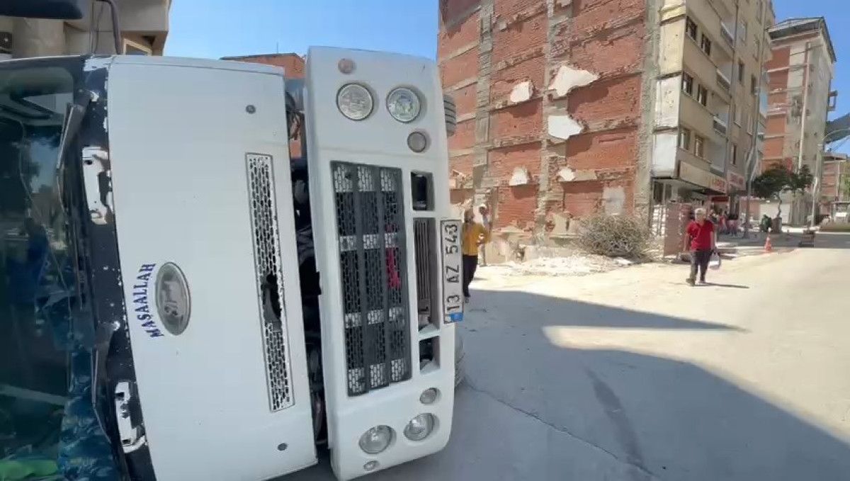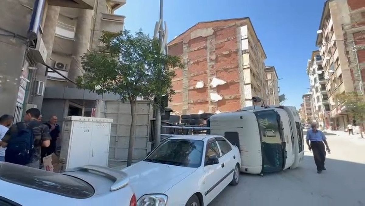 Bugün öğlenden sonra Elazığ Rızaiye Mahallesi Pertek Caddesi’nde, sürücüsünün ismi öğrenilemeyen 13 AZ 543 plakalı hafriyat kamyonu, yükünü boşalttığı sırada park halindeki 23 AFV 197 plakalı arabanın üzerine devrildi. Kamyon sürücüsü hafif yaralandı. Kamyondaki hafriyat ise yola saçıldı. İhbarla İhbar üzerine olay yerine sıhhat, itfaiye ve polis takımları sevk edildi. Kamyon sürücüsü, birinci müdahalenin akabinde önlem maksatlı hastaneye kaldırıldı.