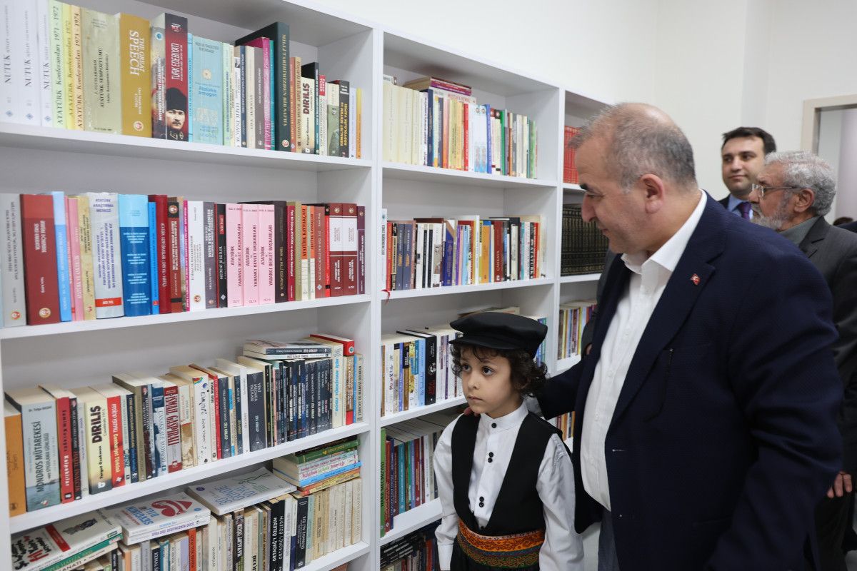 Gerçekleştirilen kurdele kesiminin ardından kütüphane gezildi.