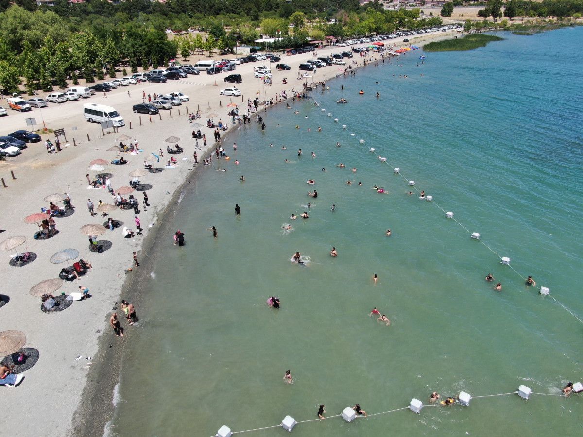Türkiye’de derinliği ile birinci sıralarda yer alan, 22 kilometre uzunluğa ve 6 kilometre genişliğe sahip Hazar Gölü’nün kıyıları tatilcilerin akınına uğradı.