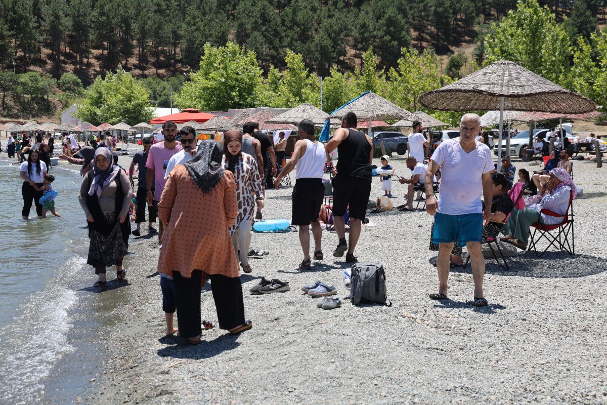 Diyarbakır’dan geldiğini lisana getiren Recep Yüksel, “Hava çok sıcak olduğu için Hazar Gölü’ne gelerek serinlemek istedik.