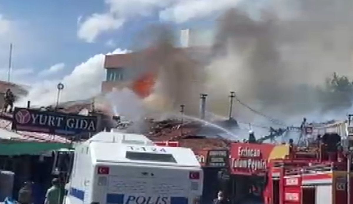 Erzincan’da bir iş yerinden yükselen alevler, süratle büyüyerek yan yana sıralı dükkanları da tesiri altına aldı.