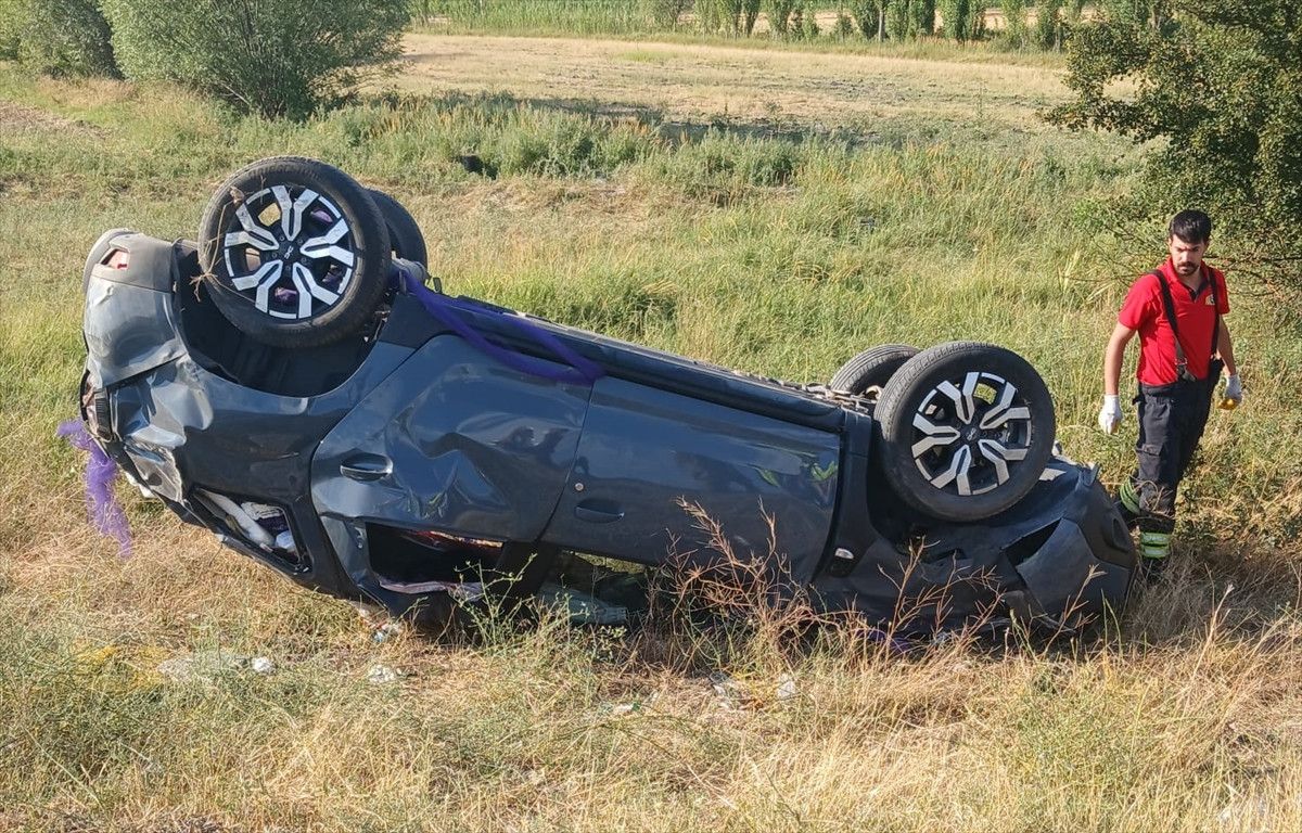 Erzincan’da Erzurum kara yolu Saztepe mevkiinde Yunus Emre G.’nin (32) kullandığı araba yoldan çıkarak devrildi.