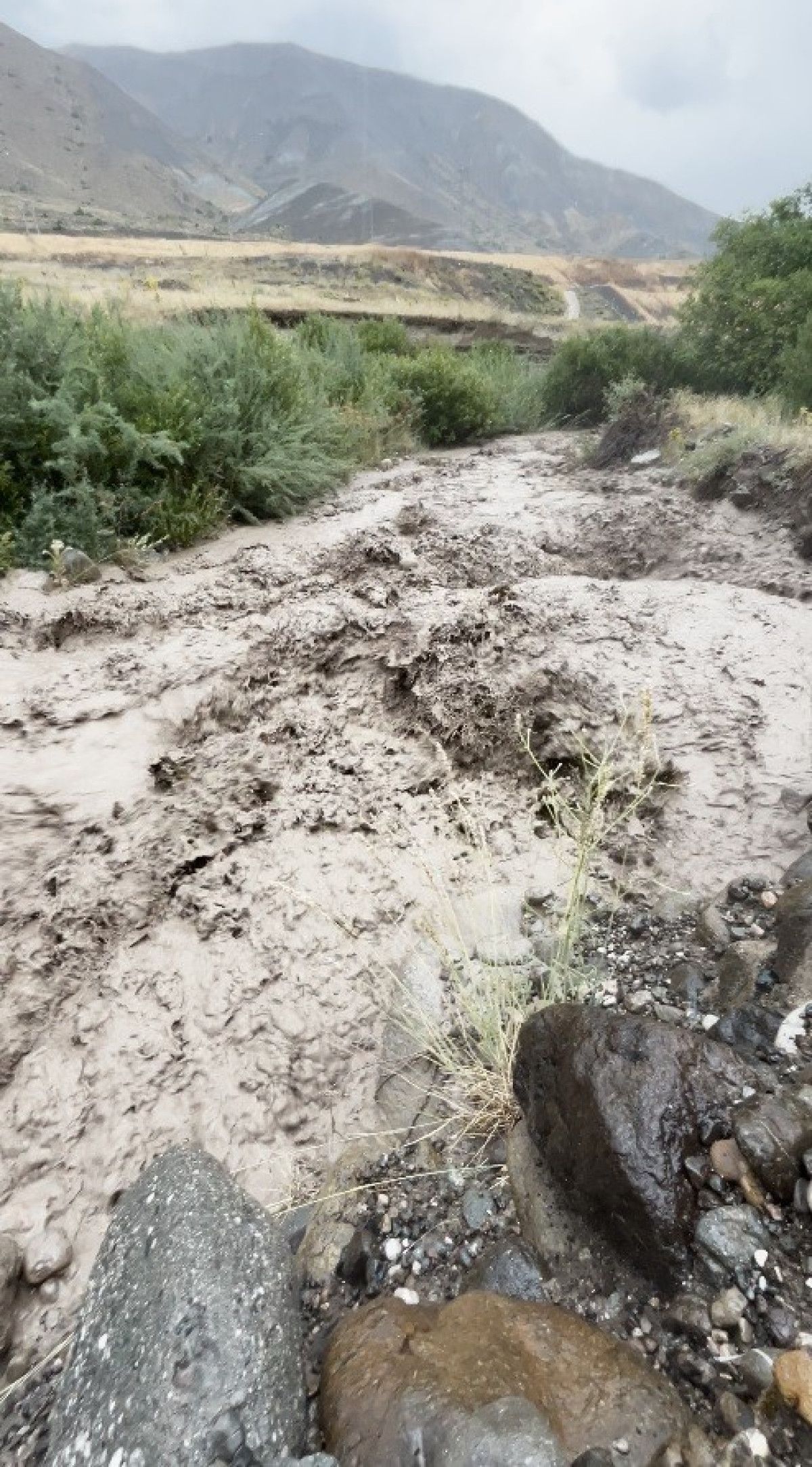 Erzincan’da ansızın bastıran şiddetli yağış nedeniyle debisi yükselen dereler, taşıdıkları çamur ve ağaç kollarıyla birlikte taşkınlara neden oldu.