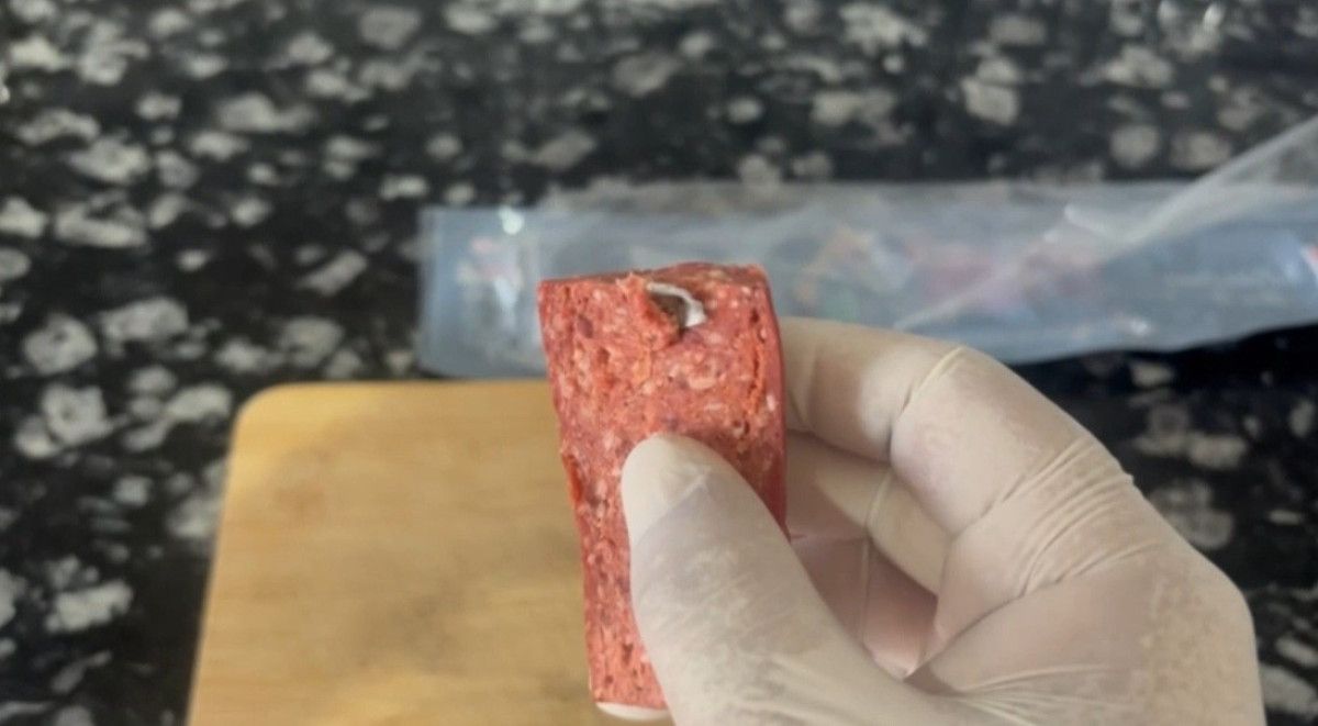 Görüntülerde, sucuğun içindeki yabancı cisim net biçimde görülüyor.
