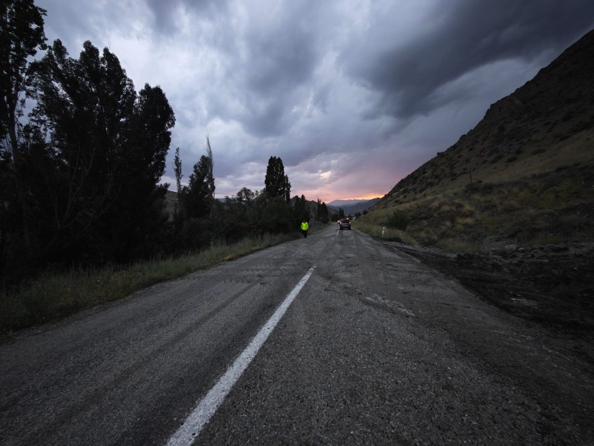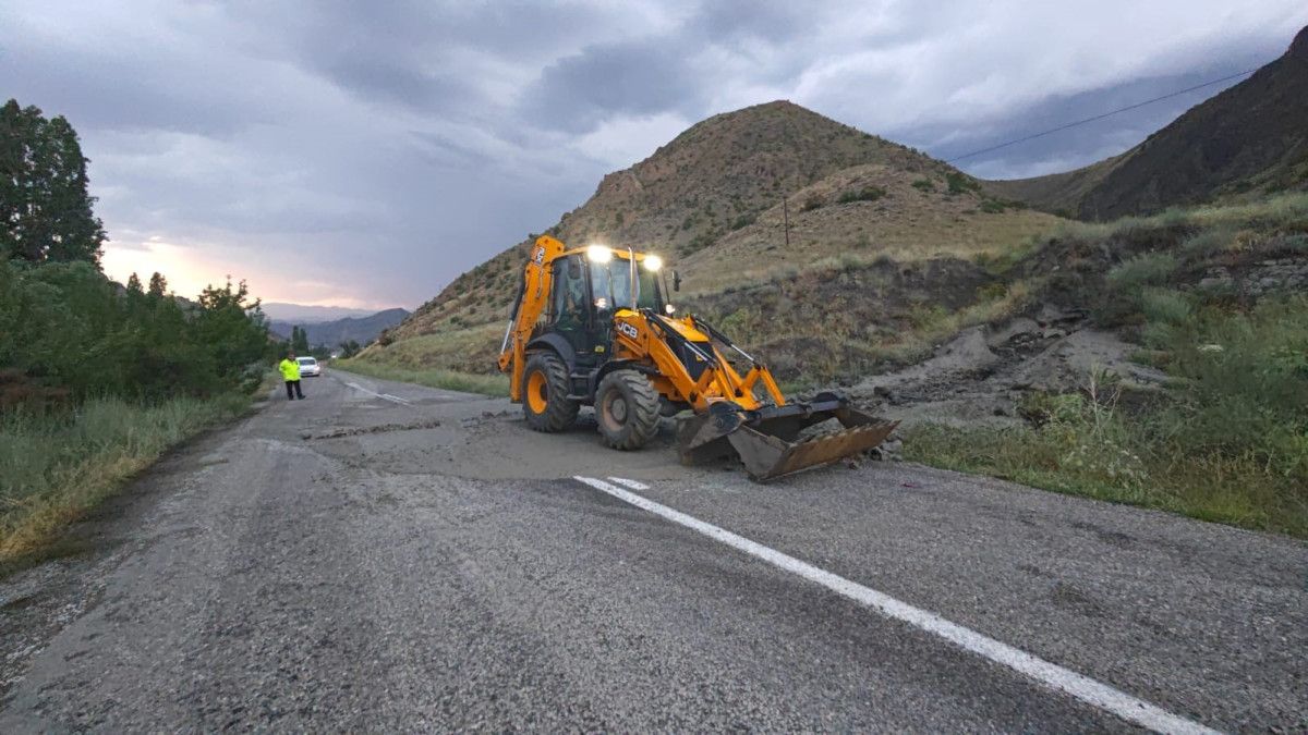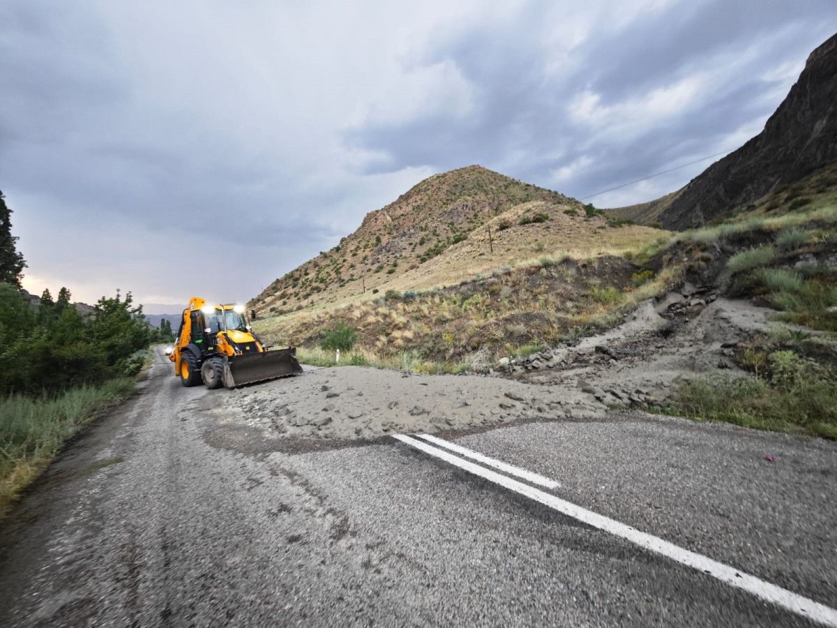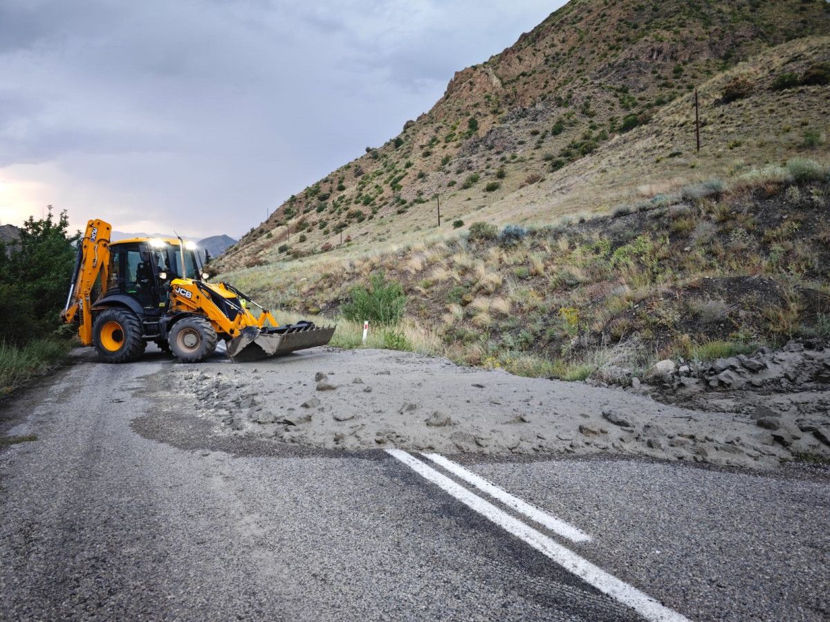 Sel suları, etraftaki gevşek toprak ve taşları yola sürükleyerek yolun bir kısmının kapanmasına neden oldu.