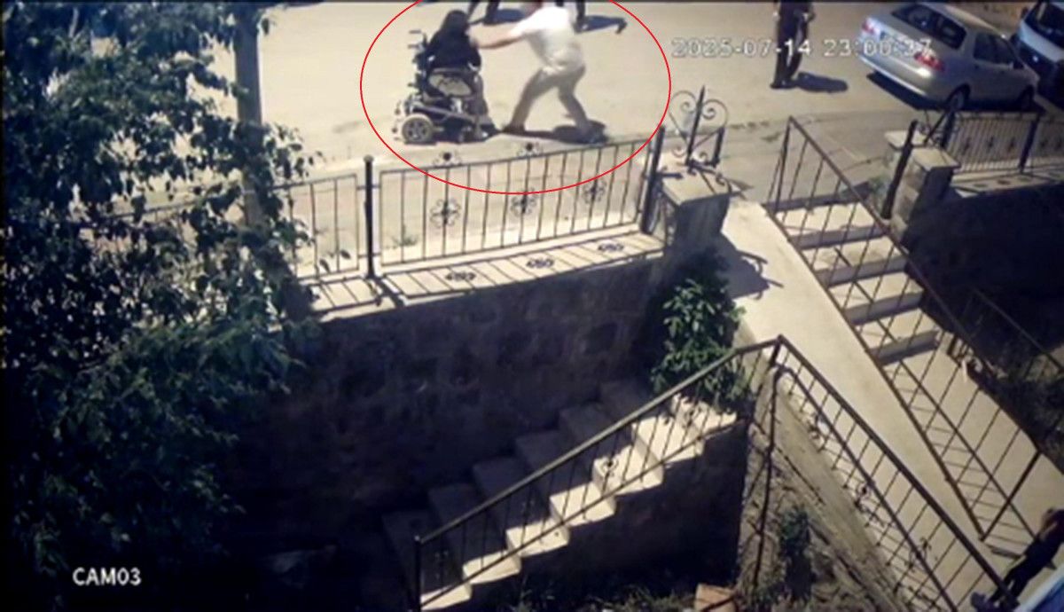Tekerlekli sandalyedeki Sarıaslan, 5 erkek tarafından tekme ve sopayla darbedildi.