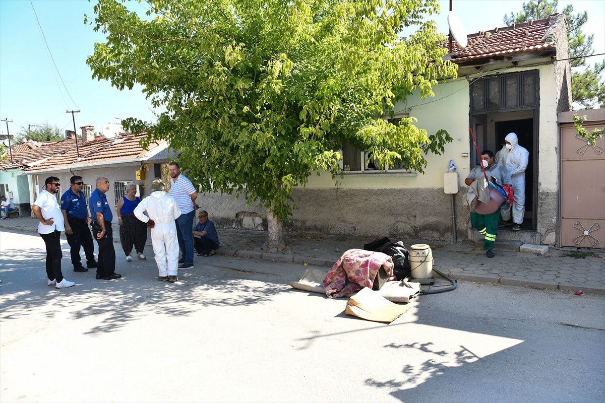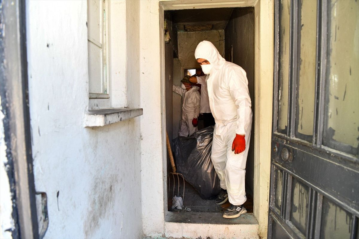İlçe Hıfzıssıhha Kurulu kararıyla Temizlik İşleri Müdürlüğü takımları, polis ve zabıta takımlarıyla konuta girerek paklık çalışması başlattı.