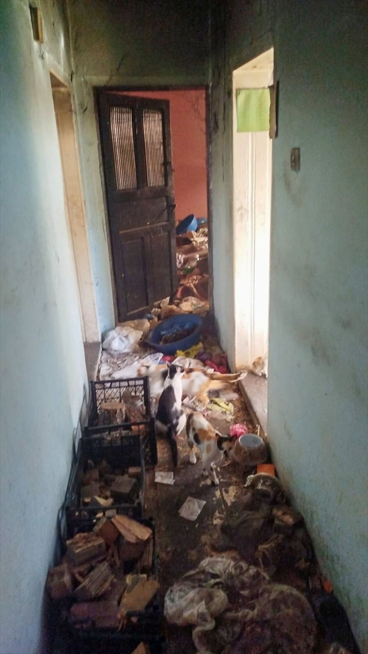 Evin odalarında, koridor ve mutfağındaki çöp dağları temizlendi.