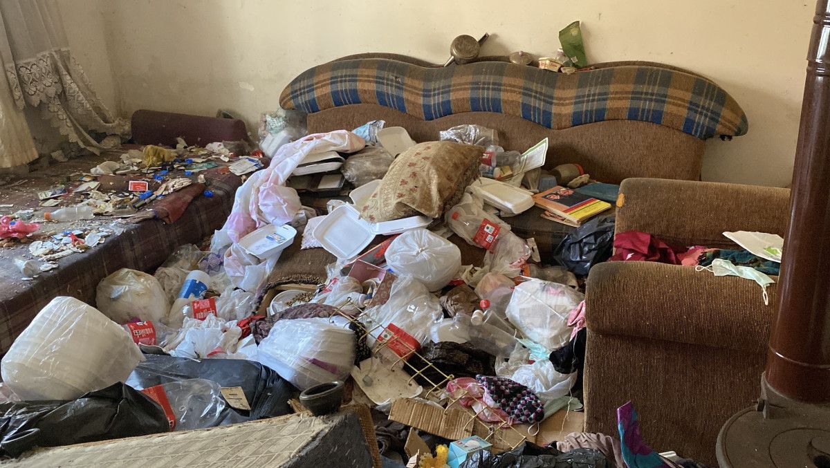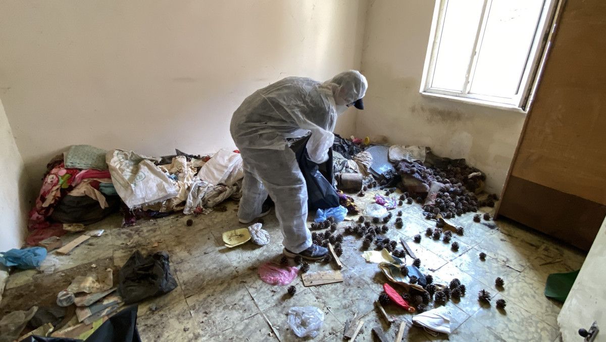 Çalışmalar sonucunda meskenden 2 kamyon çöp çıkartıldığı belirtildi.