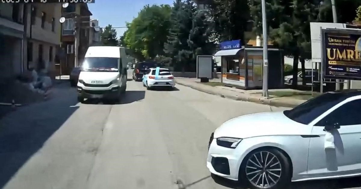 Eskişehir’in Sümer Mahallesi’nde, Maral Sokak ile Evliyagil Sokak’ın kesiştiği kavşakta kaydedilen manzaralarda, düğün konvoyuna yol açmak isteyen bir şoför, trafiği adeta durma noktasına getirdi.