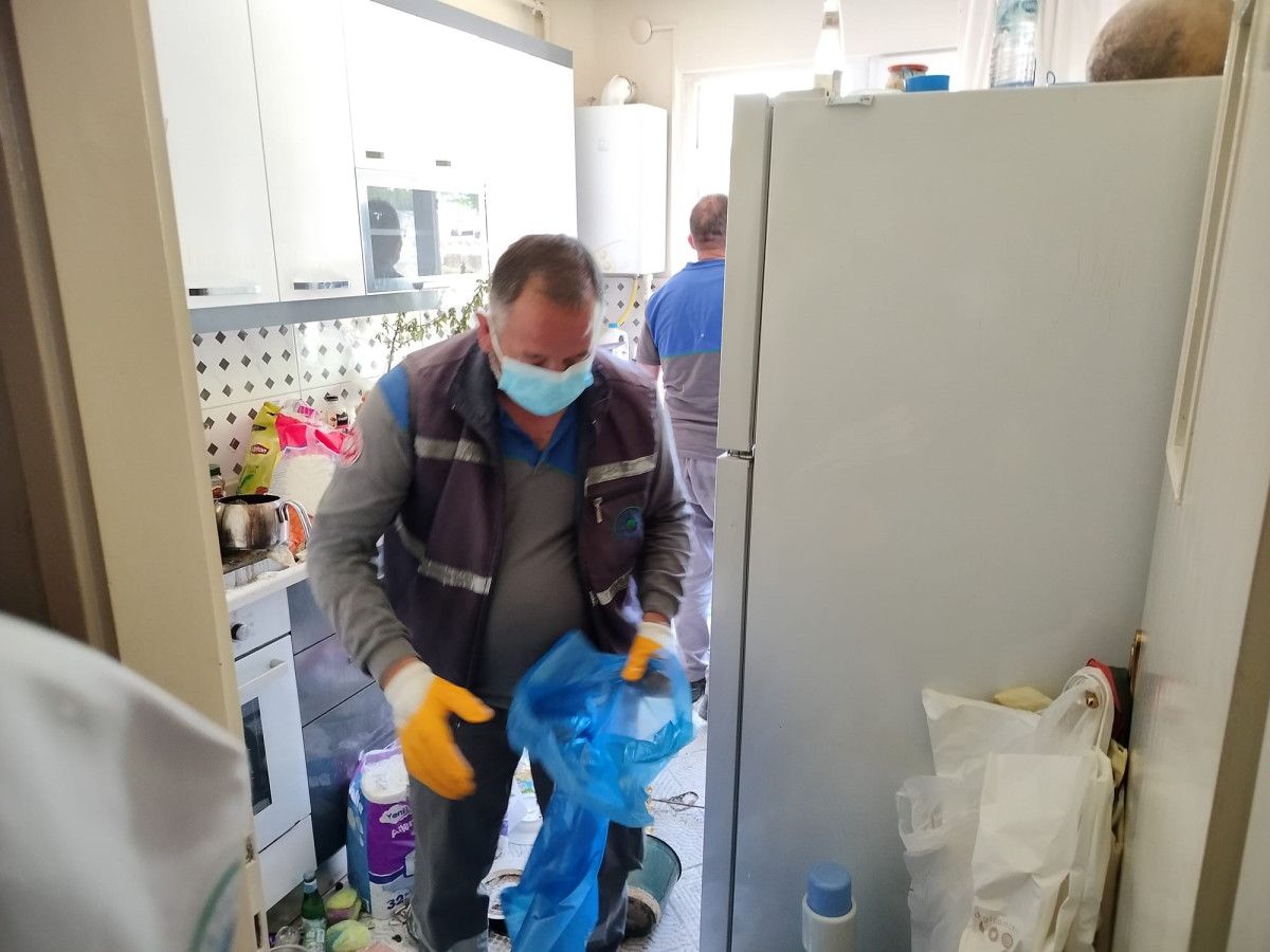 E.Ş.’nin konutuna gelen takımlar, zile tekraren basmalarına karşın içeriden karşılık alamadı. Lakin daha bina girişinden itibaren yayılan ağır kokunun etraf sıhhatini tehdit edecek boyutta olduğu belirlendi. Durum, Odunpazarı Kaymakamlığı İlçe Genel Hıfzıssıhha Şurası’na bildirildi. Konseyin talebi doğrultusunda Eskişehir 3. Sulh Ceza Hâkimliği, konutun kapısının açılarak paklık yapılmasına hükmetti.