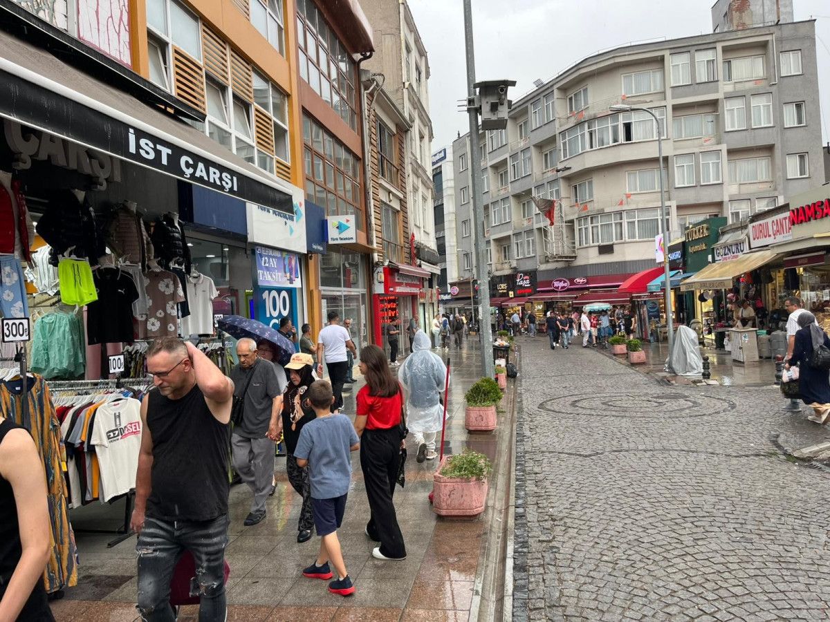 Aniden bastıran yağmura hazırlıksız yakalananlar tente altlarına ve dükkanlara sığınırken, kimi vatandaşlar ise şemsiyeleri ve şapkaları ile korunmaya çalıştı.