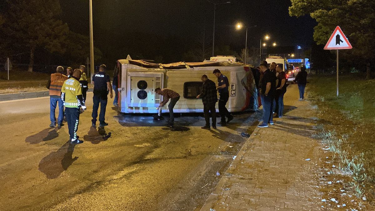 Eskişehir Etraf Yolu’nda Ankara istikametinde M.M.Ö. isimli erkek şahsın yönetimindeki minibüs, şoförünün direksiyon hakimiyetini kaybetmesi sonucunda orta refüjdeki taşlara çarparak takla attı.