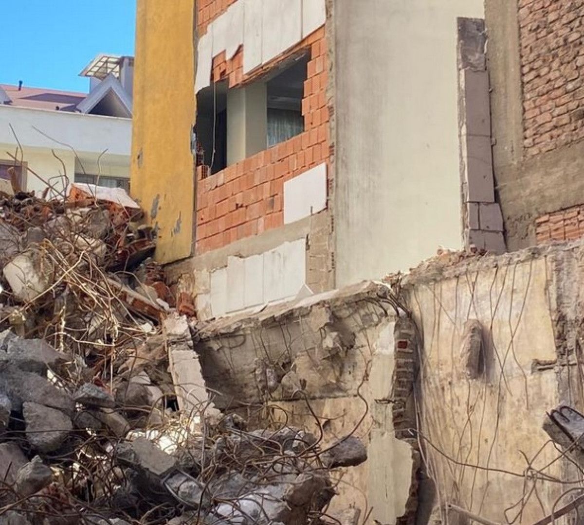 Olay anında meskende bulunan aile, büyük bir panikle dışarı çıkarak durumu çabucak inşaat çalışanlarına bildirdi. Yıkım çalışmaları derhal durdurulurken, dairenin içine düşen moloz temizlendi, ziyan gören duvar da onarıldı.