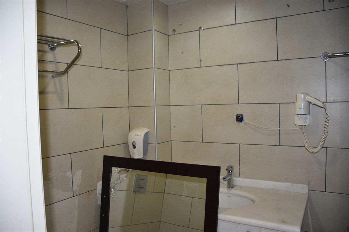 Cumhurbaşkanı Erdoğan’ın kaldığı oda, toplantı yaptığı ve o gece muhafaza polislerinin bulunduğu bina ile güvenlik güçlerinin kaldığı demir korkuluklarla koruma altına alınan odalarda paklık dahi yapılmıyor.