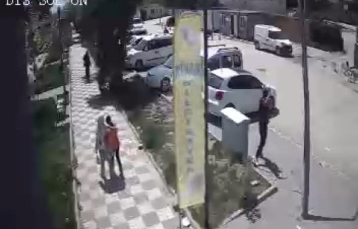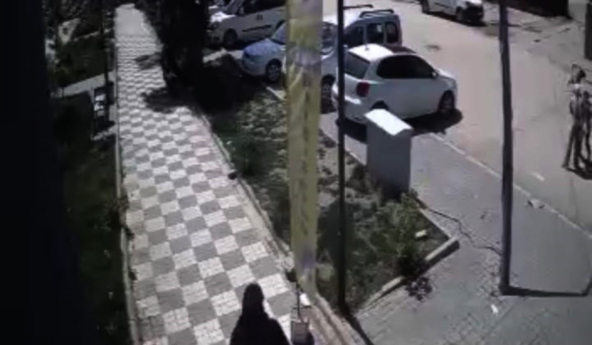 Yaşananlar, çevredeki bir iş yerinin güvenlik kamerasına yansıdı.