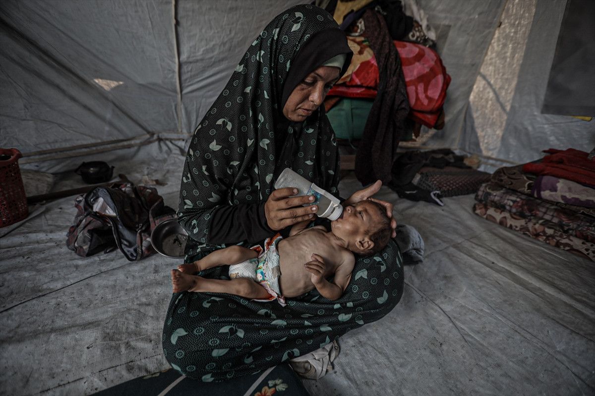 Annesi, süt ve temel besinlere ulaşamadığı için bebeğini sadece suyla beslemek zorunda kalıyor. Şiddetli yetersiz beslenme yaşayan Sobh, hayati tehlikeyle karşı karşıya.