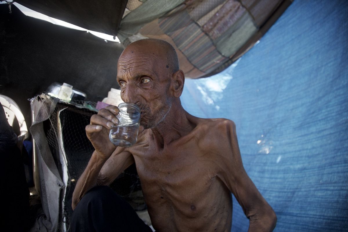 Gazze Şeridi’nin güneyindeki Abasan bölgesinden zorla göç ettirilen 58 yaşındaki eski müezzin Selim İbrahim Asfur da İsrail ablukası nedeniyle önemli derecede yetersiz beslenme yaşıyor.