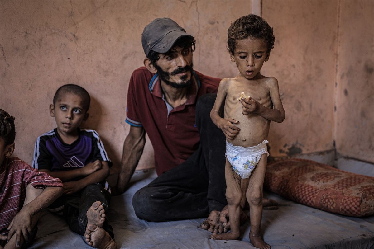 Gazze kentinin batısındaki Şati Kampı’nda ailesiyle birlikte yaşayan Ebu Ful, yetersiz beslenme nedeniyle her geçen gün kilo kaybı yaşıyor.