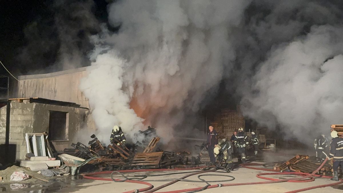 Henüz bilinmeyen bir nedenle başlayan yangında binlerce ahşap palet alevlere teslim oldu.