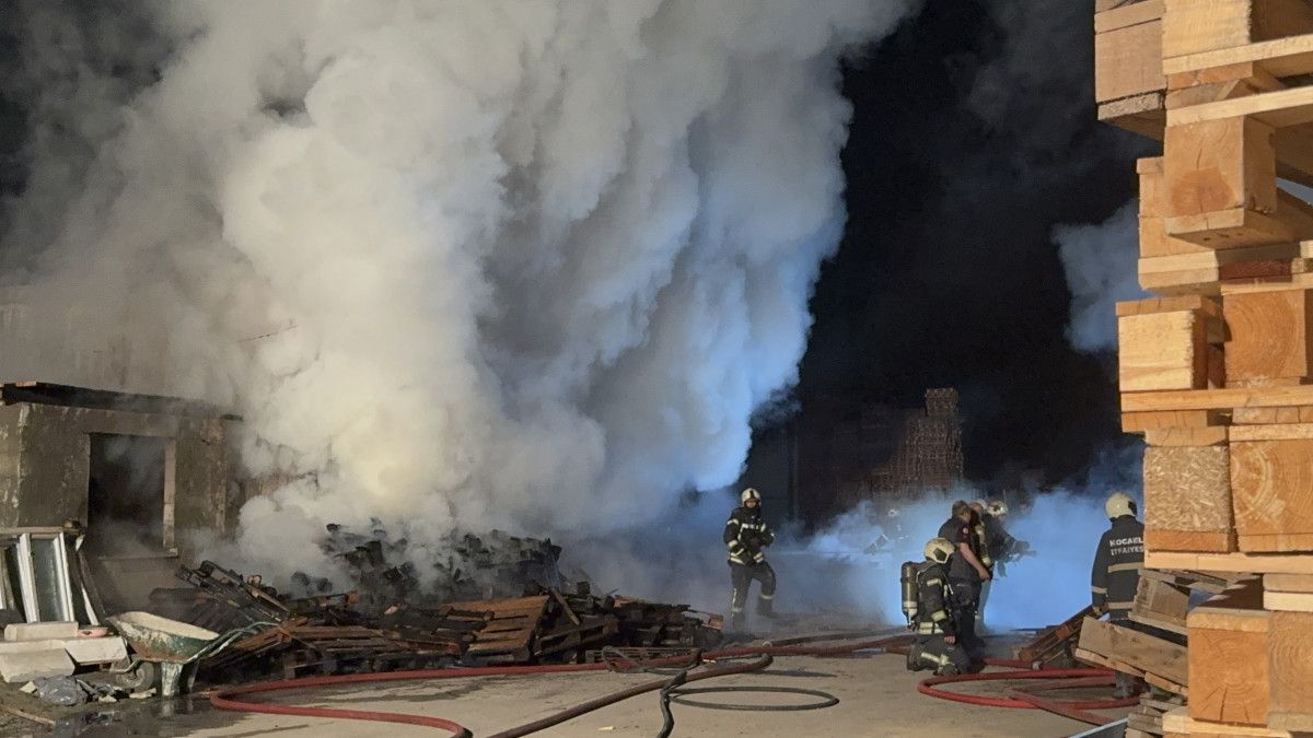 Kocaeli’nin Gebze ilçesi Tavşanlı Mahallesi Atatürk Caddesi üzerinde bulunan bir palet deposunun açık alanında yangın meydana geldi.