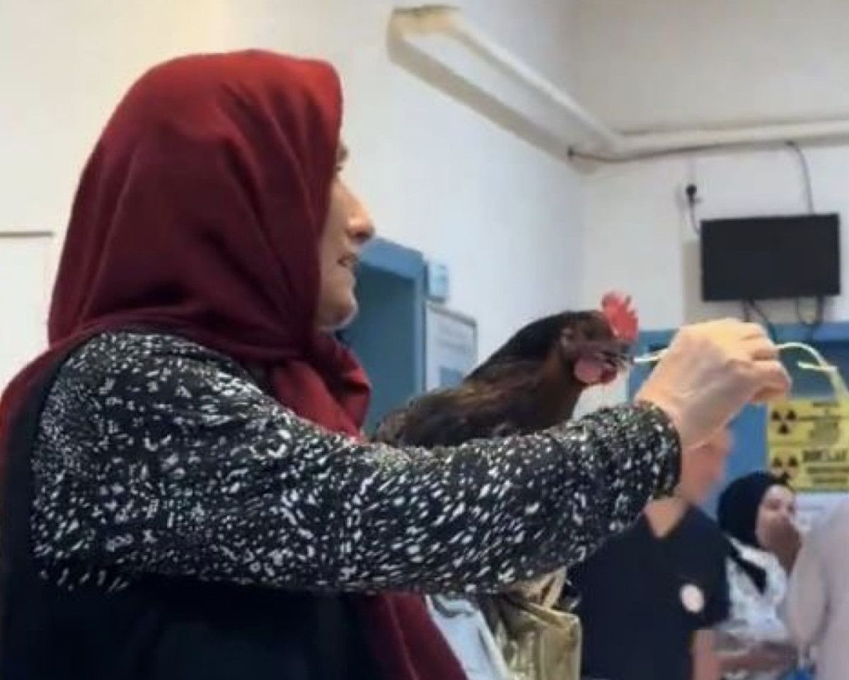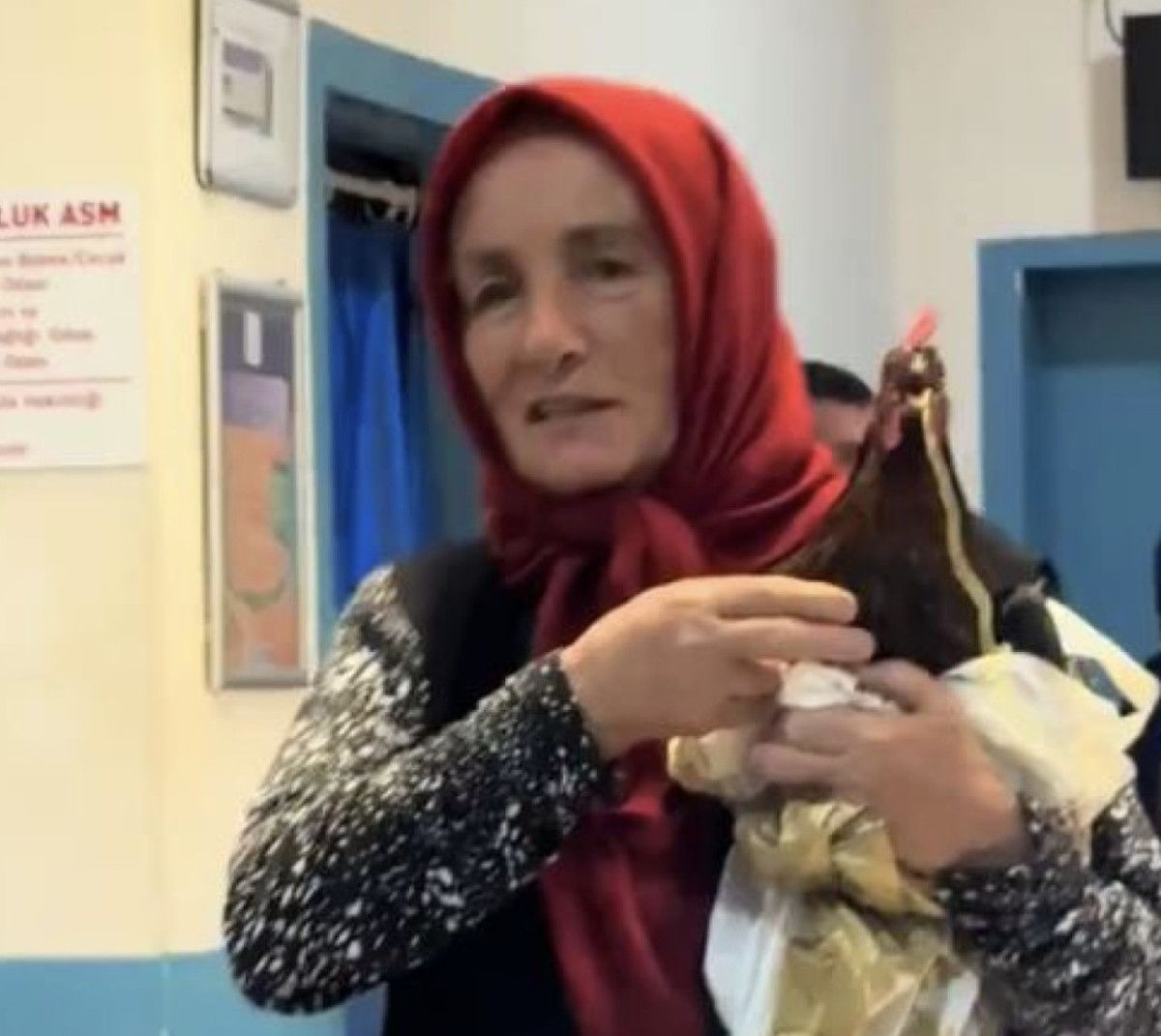 Kadın, sıhhat görevlilerinden tavuğun röntgeninin çekilmesini istedi.