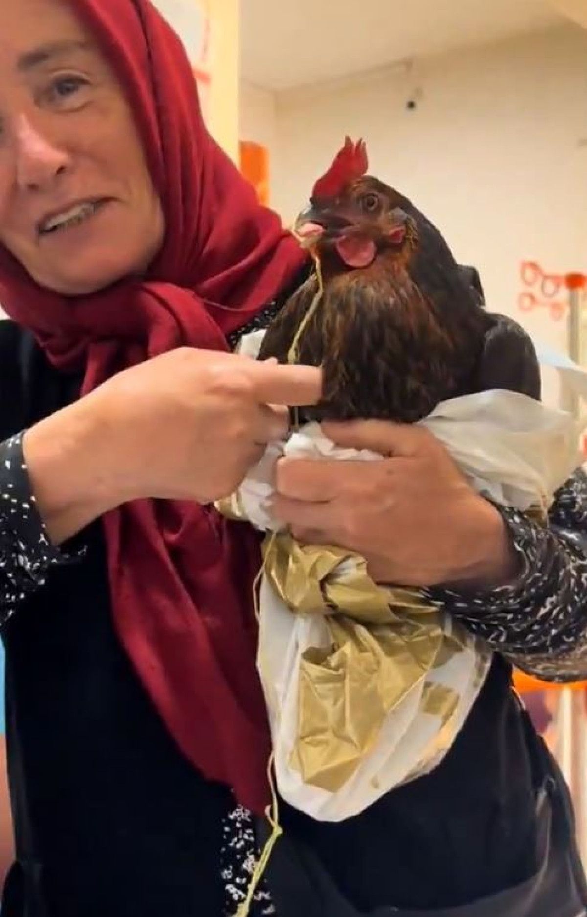 Giresun’da hastanede enteresan anlar: Boğazına iğne kaçan tavuğuna röntgen çekilmesini istedi