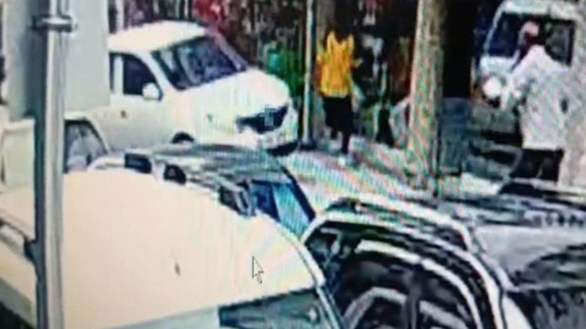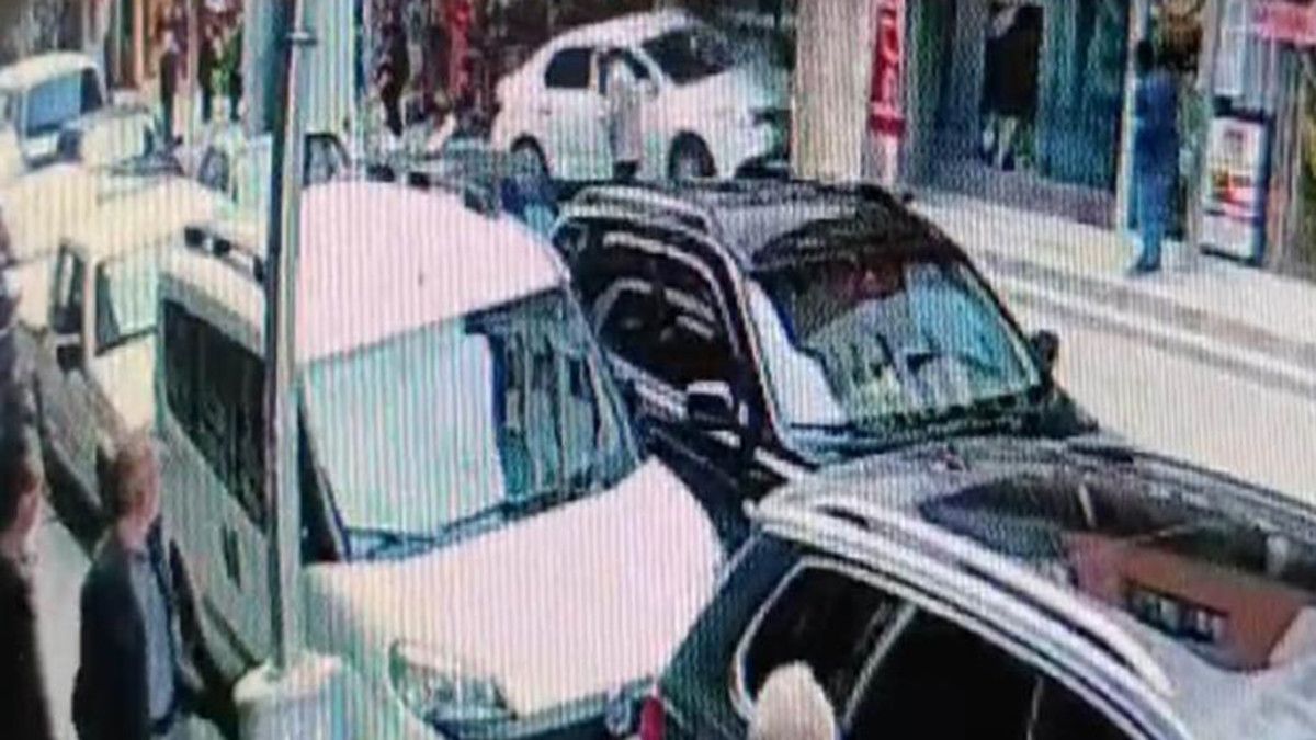 Olay anında mağaza önünden geçen iki çocuk, arabanın altında kalmaktan son anda kurtuldu.