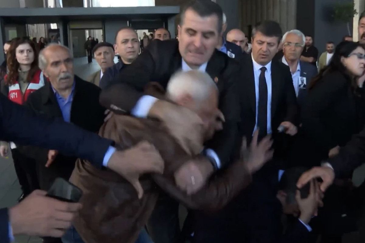 Özgür Özel’in başına yumruk atan şahıs, muhafazalar tarafından etkisiz hale getirilip polislere teslim edildi.