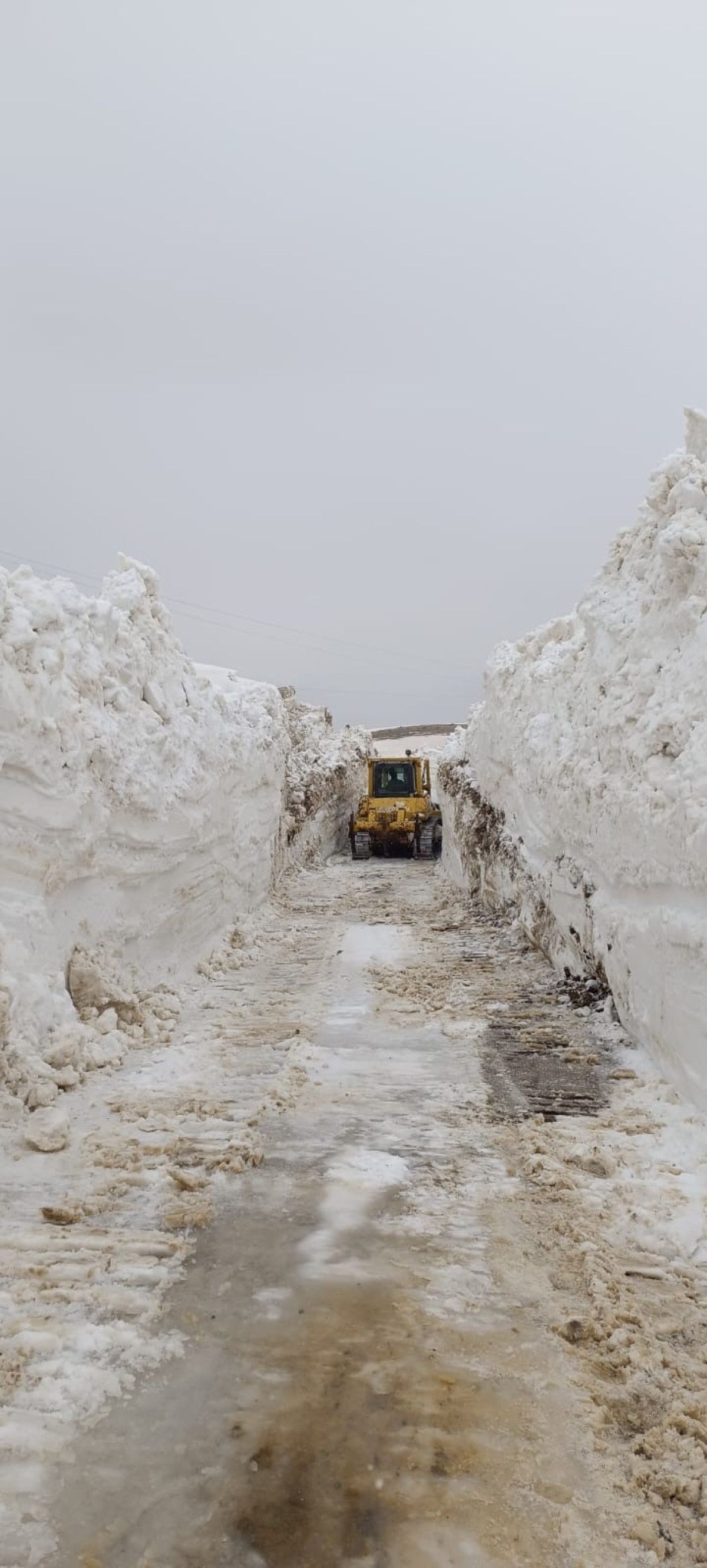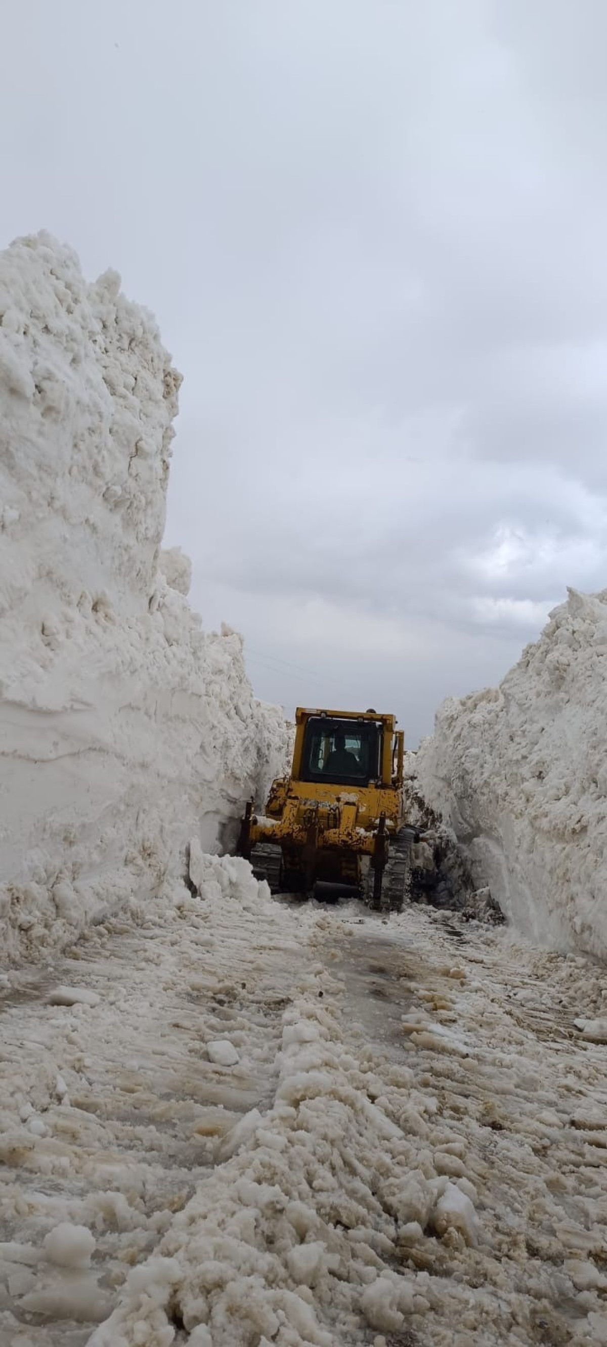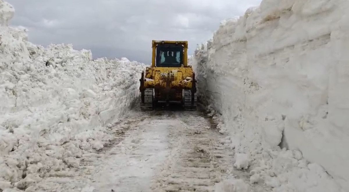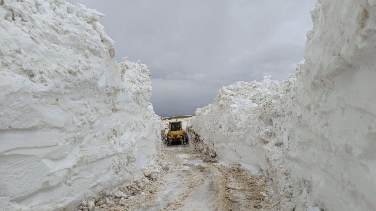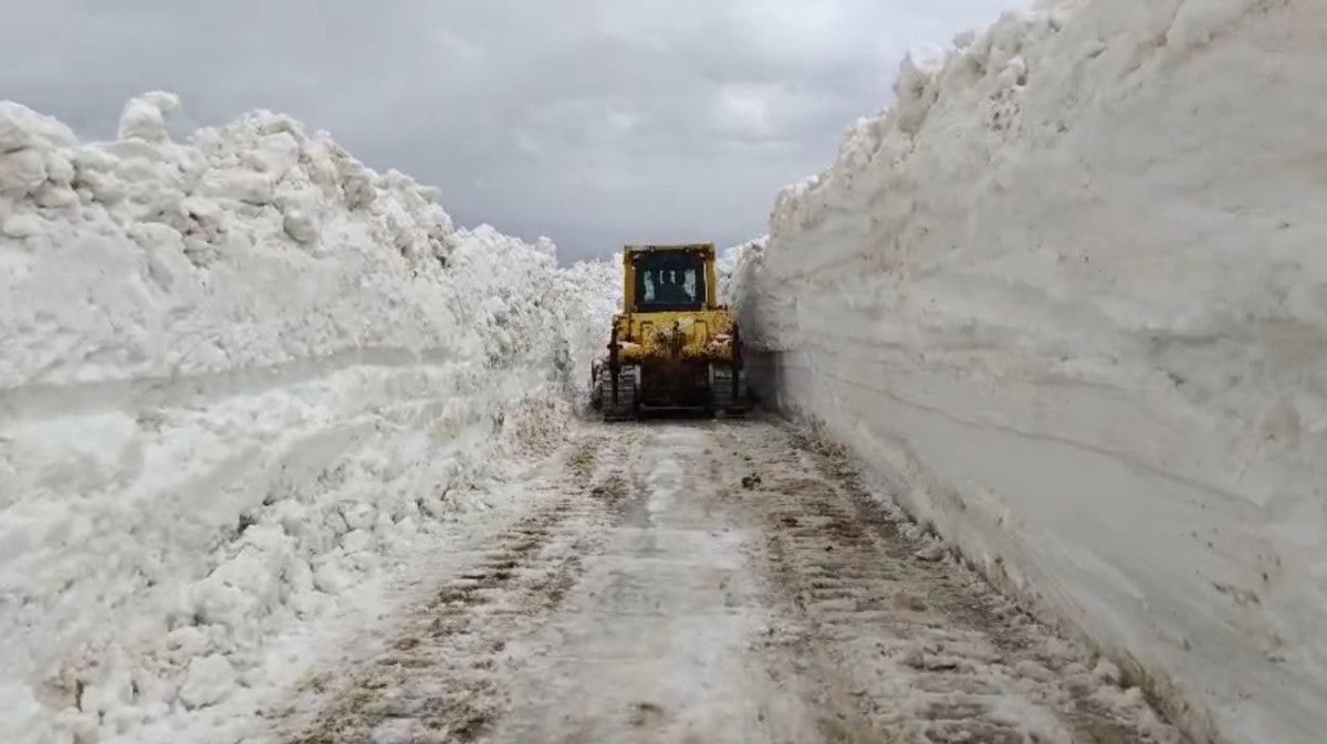 Yer yer 3 metreyi bulan kar kütleri nedeniyle vakit zaman sıkıntı anlar yaşayan takımlar, kepçe ile açamadıkları alanlarda ise ekskavatör kullanıyor.