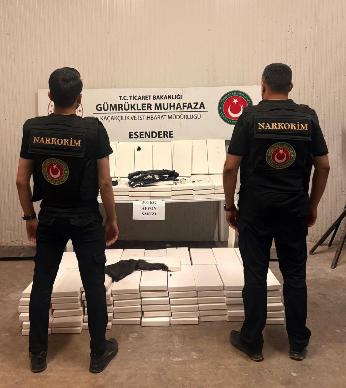 Narkotik köpeği ile tırda yapılan aramada, dorsede ahşap kasalar içerisindeki mermer blokları ortasında gizlenen 300 kilo afyon sakızı ele geçirildi.