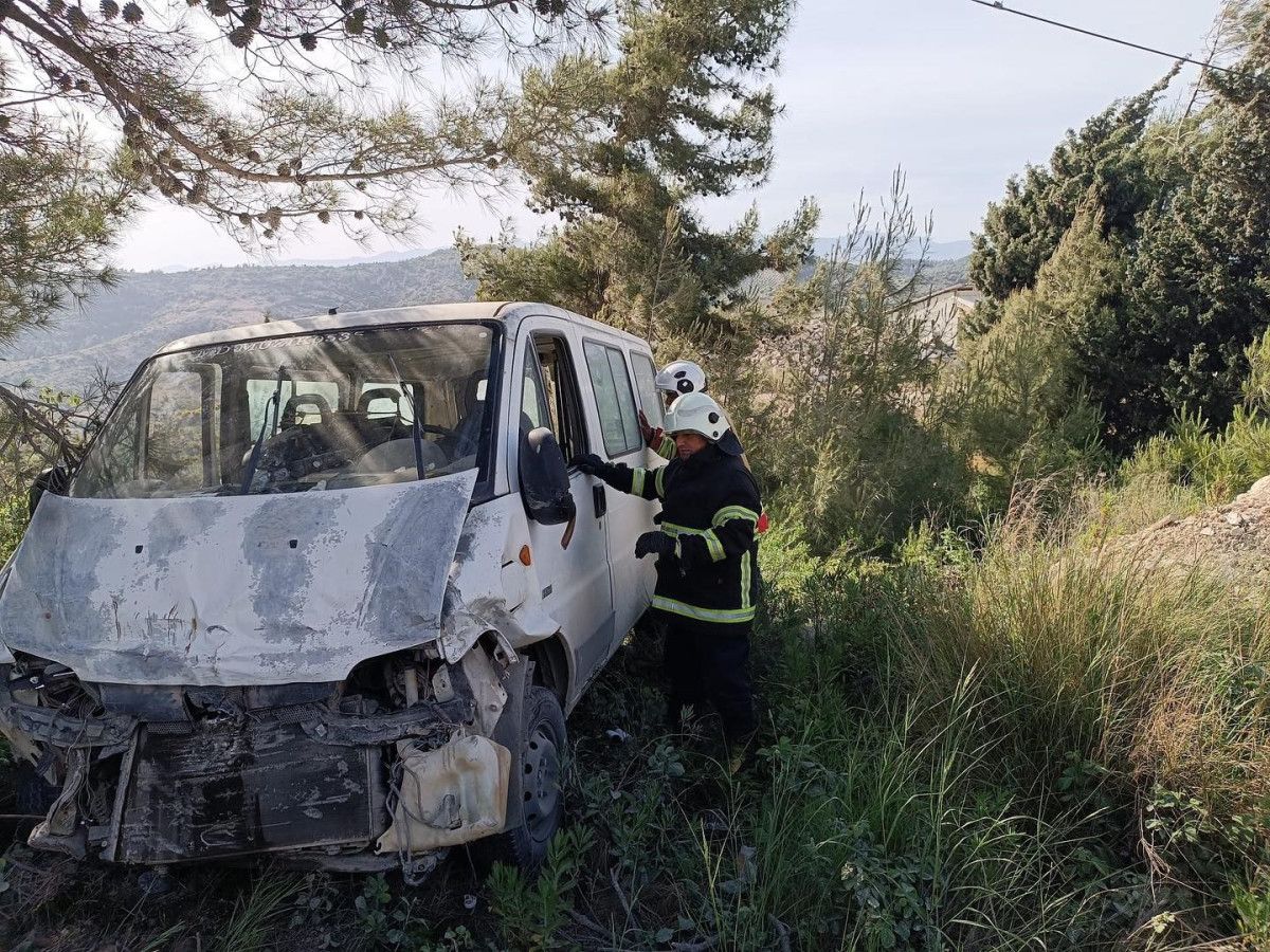 Diğer minibüs ise çarpışmaylazeytin bahçesine uçtu.