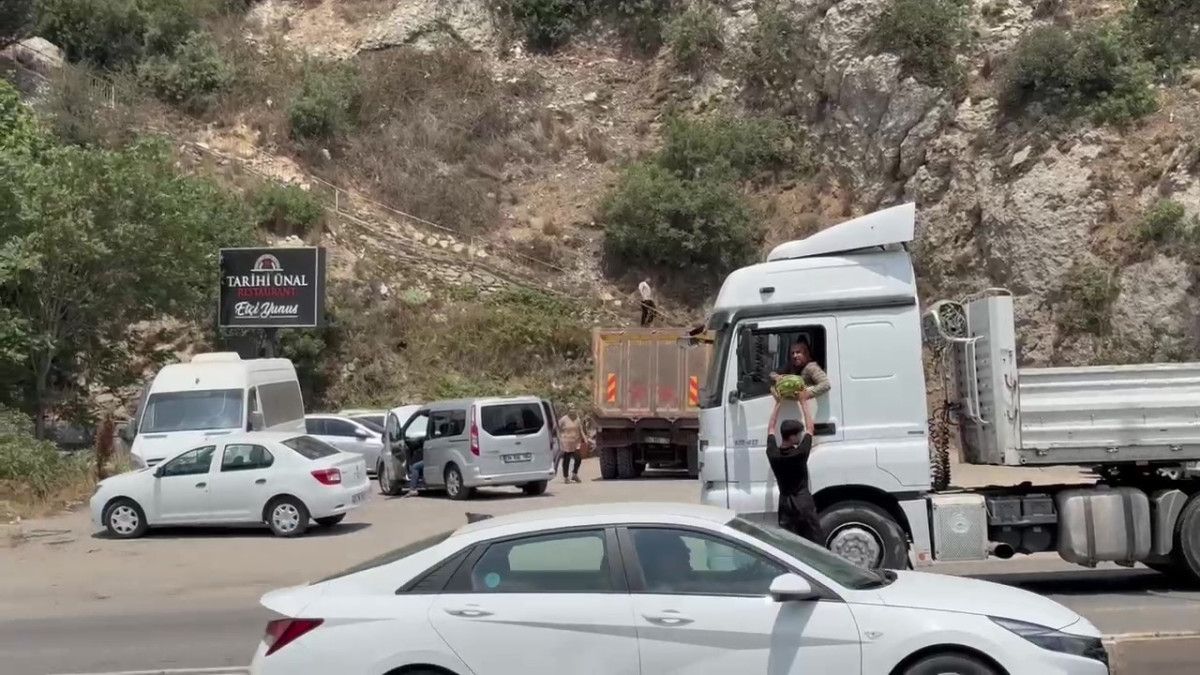 Hatay’ın Belen ilçesinde esnaflık yapan Yunus Emre Cömert, sıcak havalar nedeniyle tarlada kalan ve fiyatlarının düşmesiyle çiftçiler tarafından toplanmayan bir kamyon dolusu 20 ton karpuzu ilçesine getirdi.