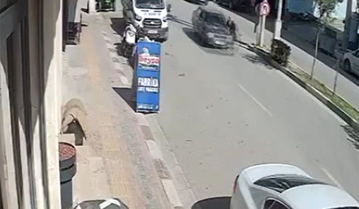 Kaza etraftaki bir iş yerinin güvenlik kamerasınca kaydedildi.