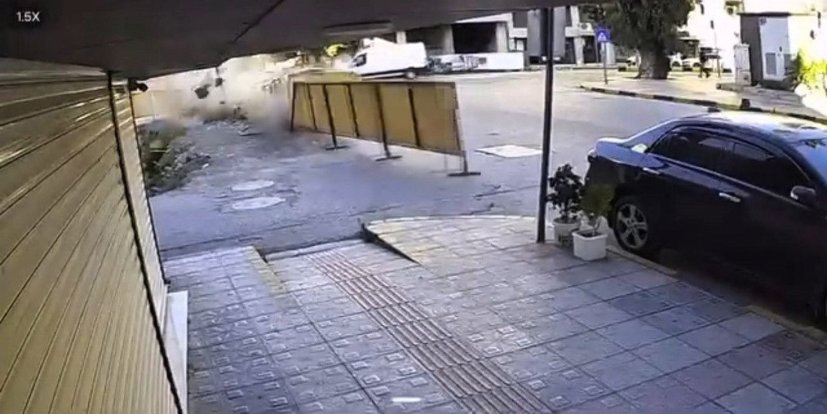 O anlar ise etraftaki bir iş yerinin güvenlik kamerasına saniye saniye yansıdı.