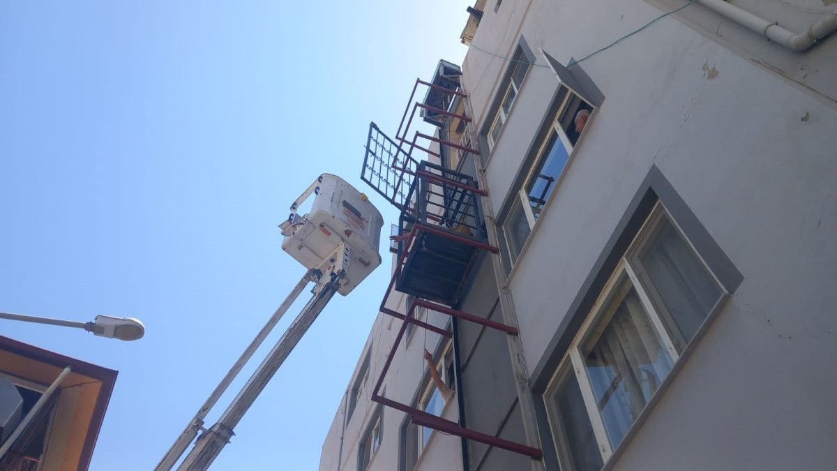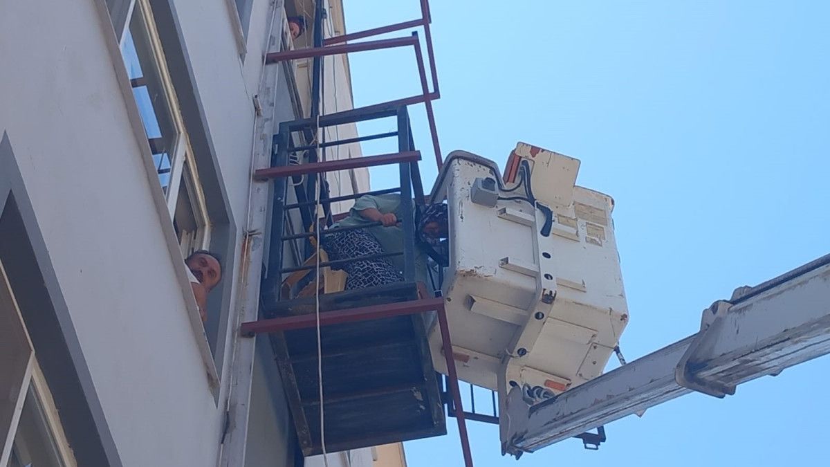 4’üncü kattaki konutundan aşağı inmek için asansörü kullanan 80 yaşındaki Sultan A, kurtarılmak için itfaiye gruplarının gelmesini bekledi.