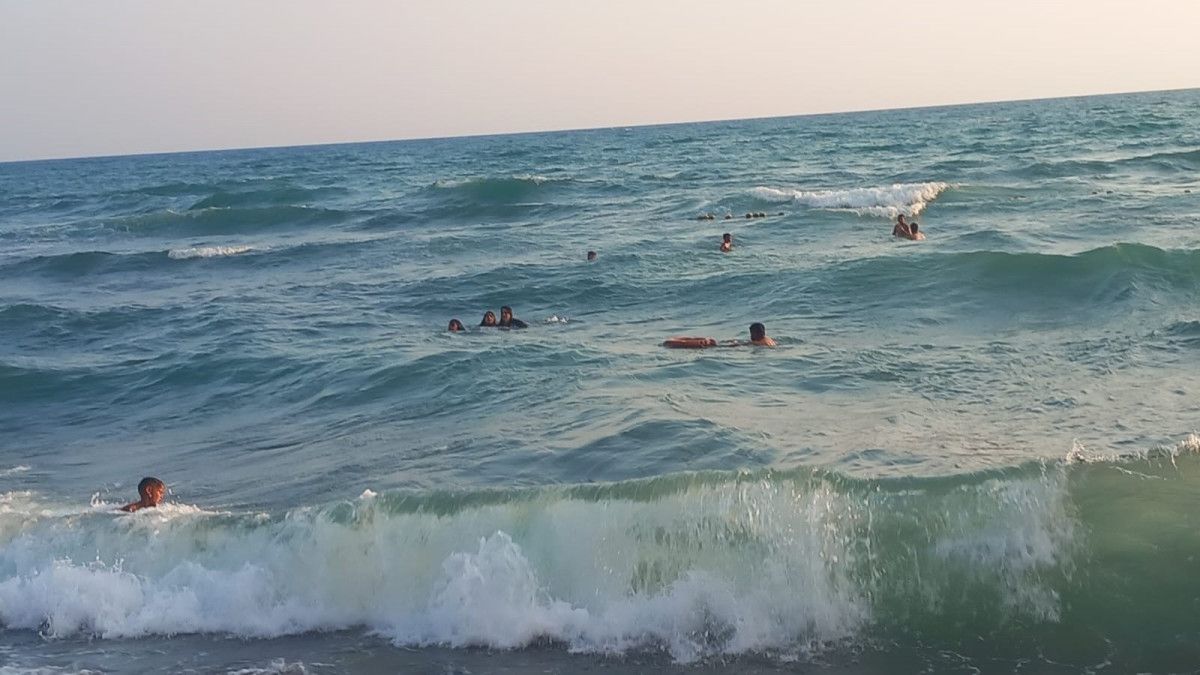Hava sıcaklığının 40 dereceyi geçtiği kentte serinlemek isteyen 3 kız çocuğu, Çevlik kıyısında denize girdi.