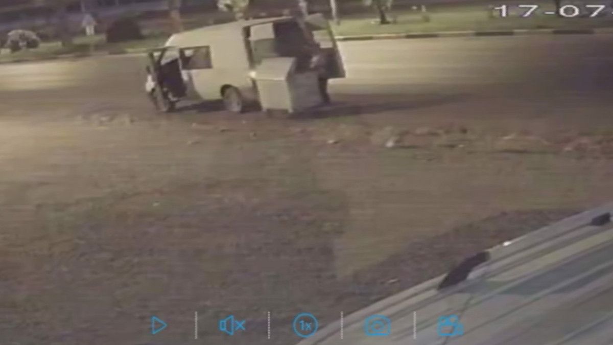 Şahıslar, çöp konteynerini araca yükleyerek yollarına devam ettiler.