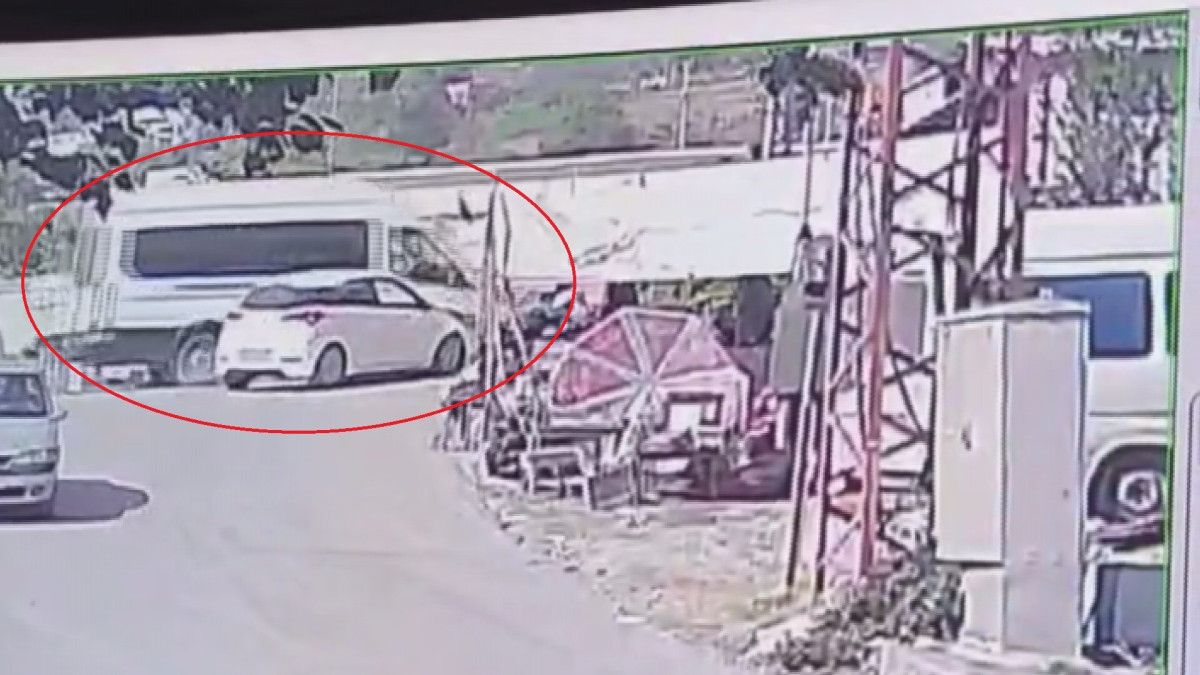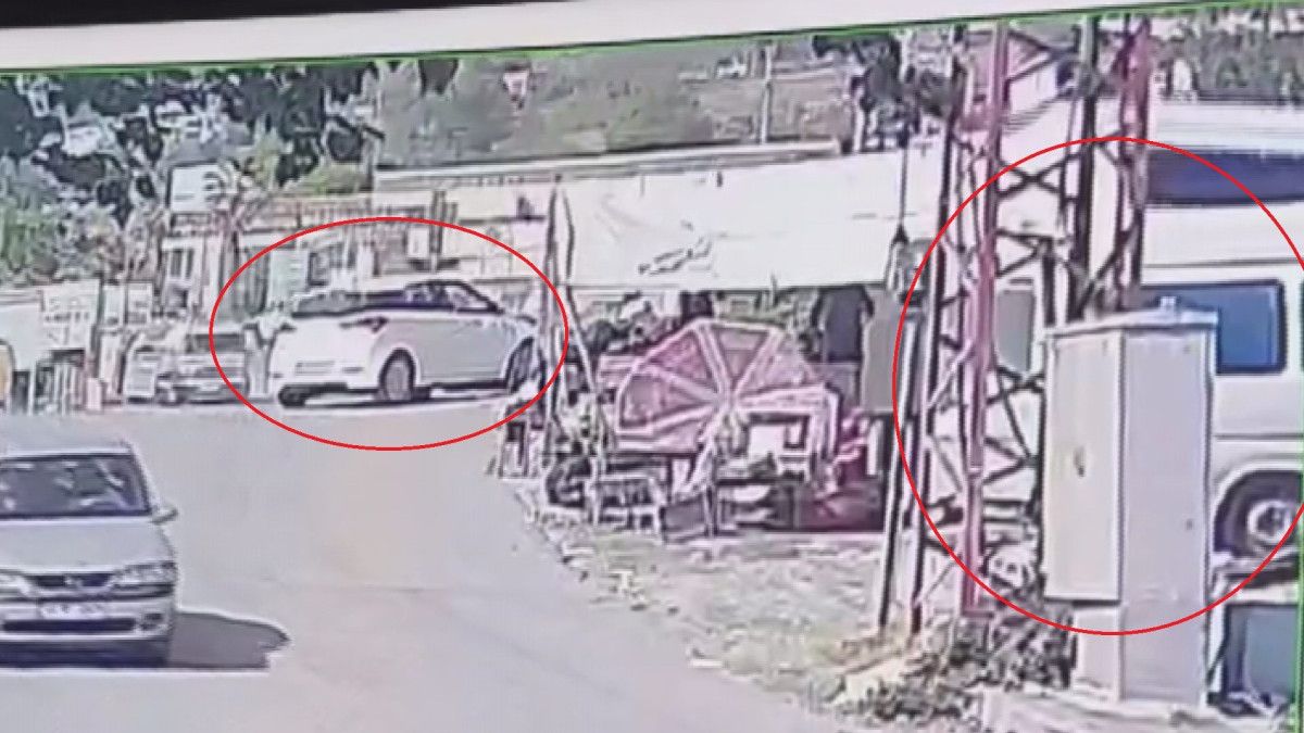Otomobille çarpışan minibüsün dereye uçtuğu anlar kameraya yansıdı.