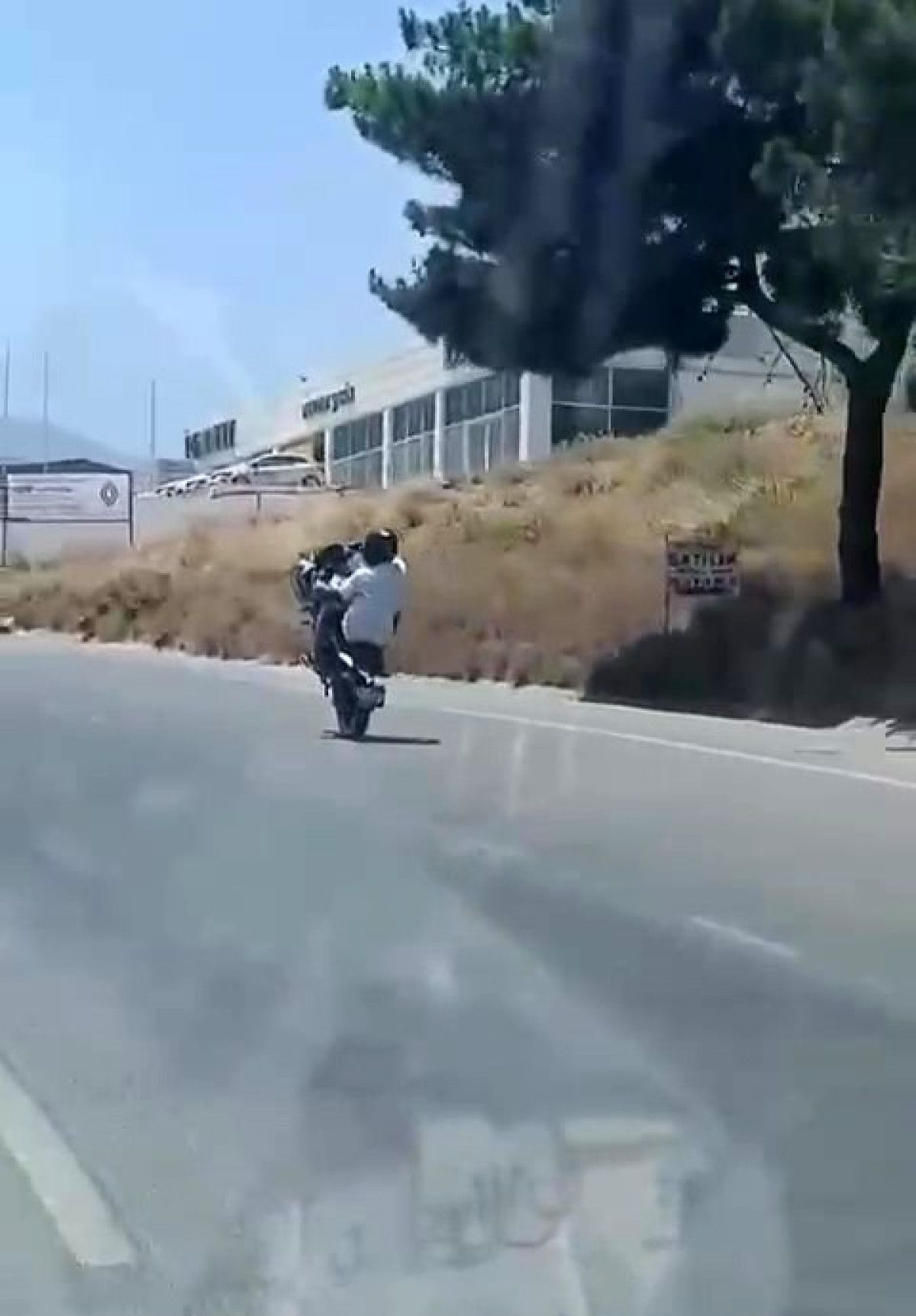 Hatay İskenderun-Antakya yolu üzerinde kimliği şimdi belirlenemeyen motosiklet şoförü, trafikte seyir halindeyken ön tekeri havaya kaldırarak uzun müddet bu halde ilerledi.