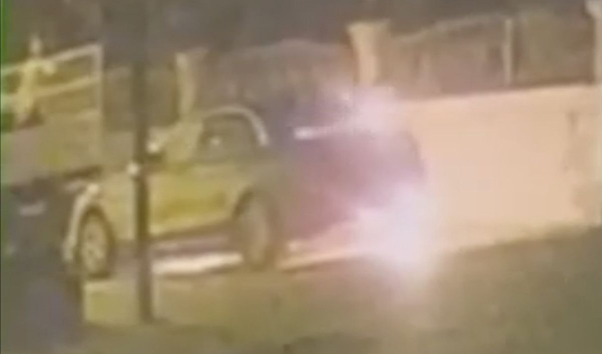 Öte yandan, arabanın kundaklanma anı etraftaki bir iş yerinin güvenlik kamerasına yansıdı.