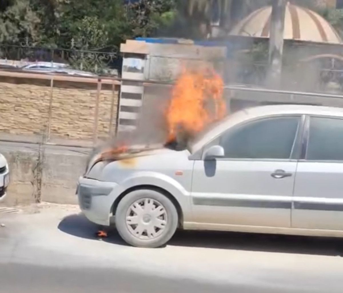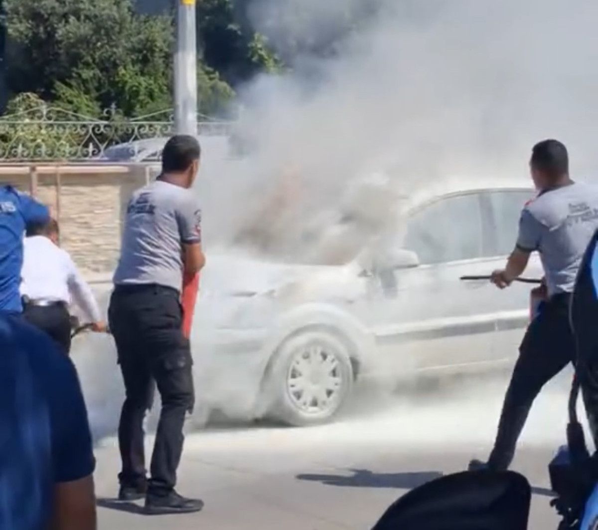 Kısa müddette aracı saran yangın, etraftaki vatandaşlarda paniğe neden oldu.